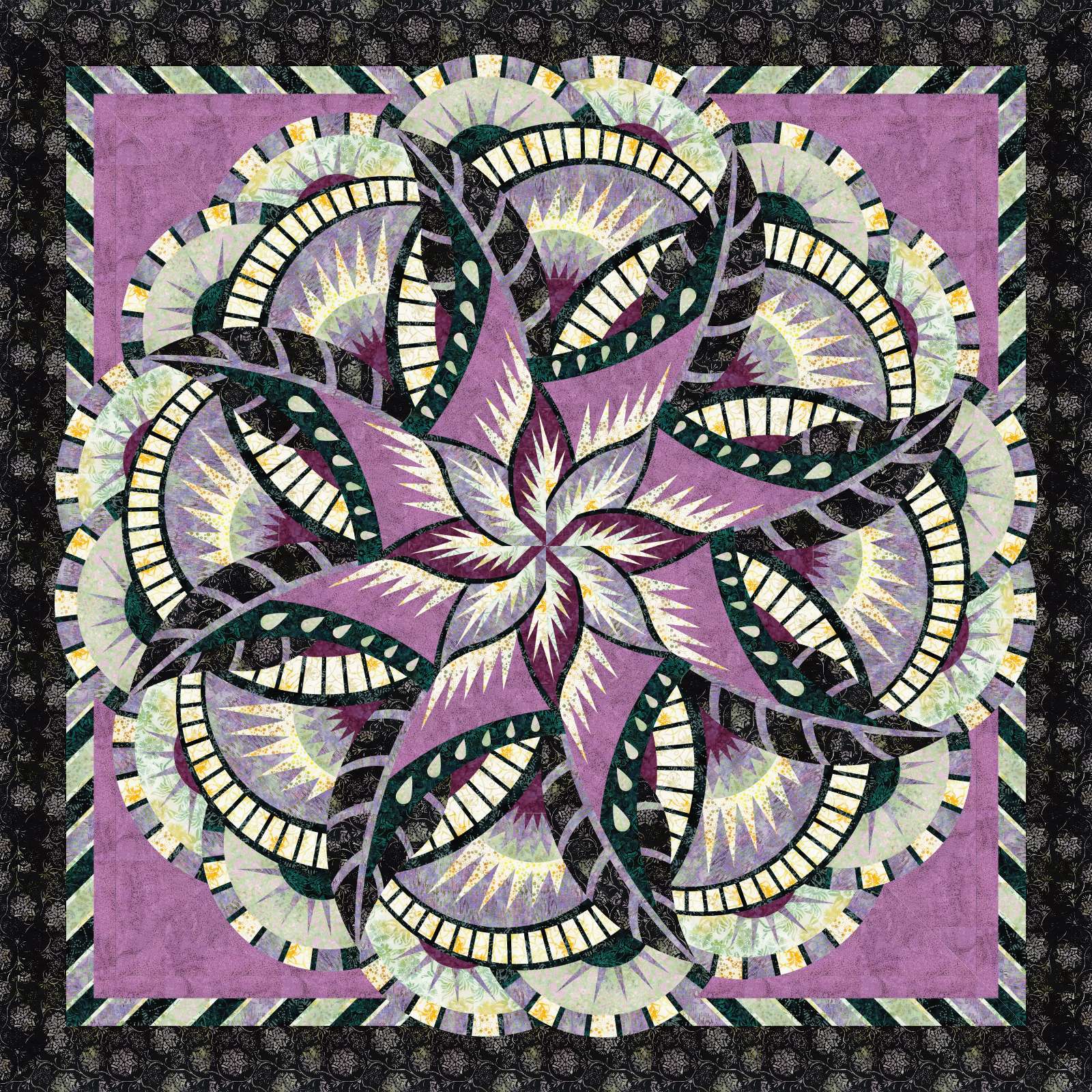 This kit includes fabric for the quilt top plus binding. Backing not included. This kit also includes the complete pattern package including instruction booklet plus any required foundation papers or appliqué templates for the design.