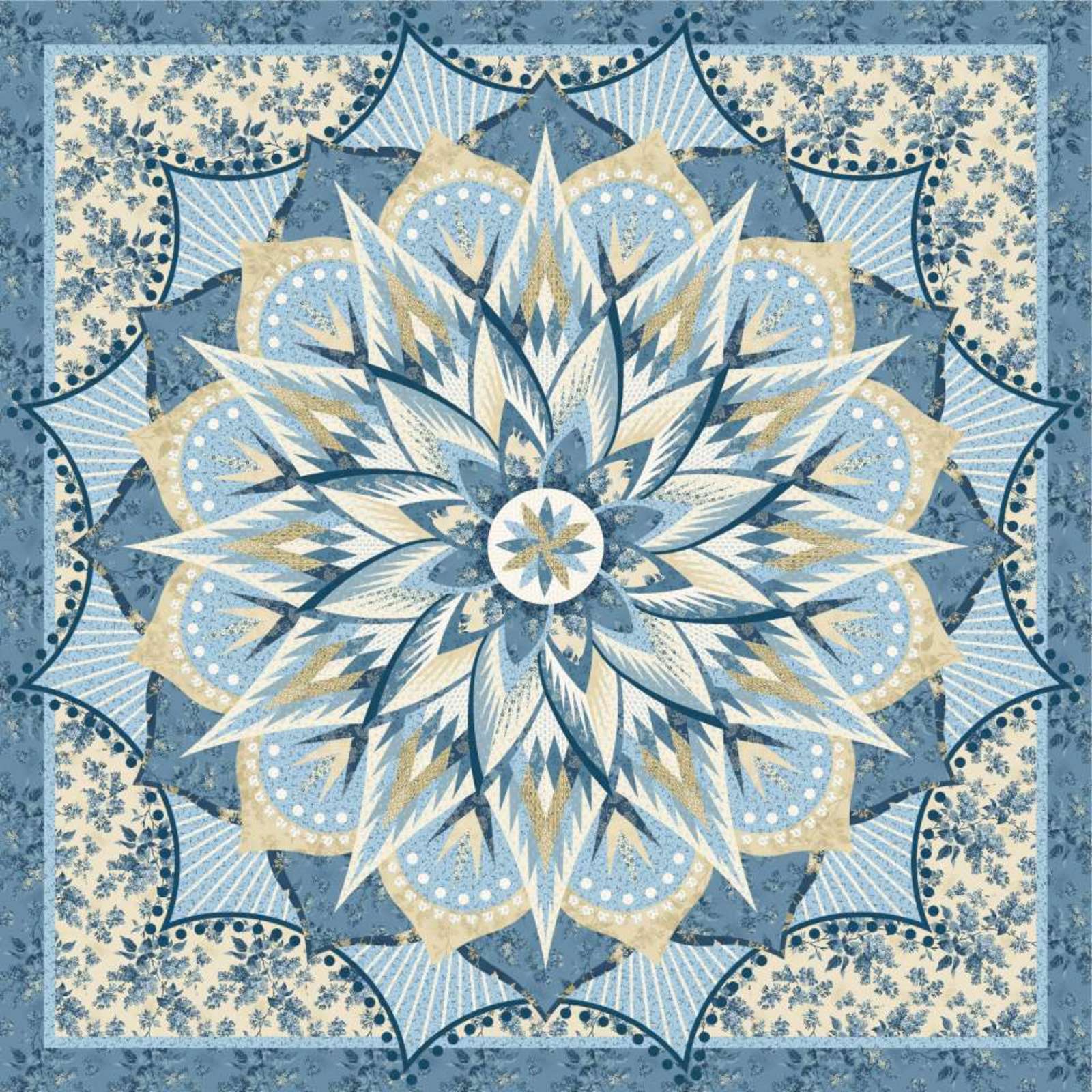 One of the most iconic and beautiful fabric collections by Edyta Sitar, we are so excited to offer this gorgeous Blue Sky fabric collection that has been married to the new Carnival Flower design. This stunning quilt fabric is 100% woven cotton, rather than batik, which lends to an even more 'romantic' feeling. We also offer this in a lighter Soft Blue Sky version. The kit is organized so that much of the guess work and preparation is done ahead for you - the fabrics are separated into first cuts within each section and also labeled for your convenience!
