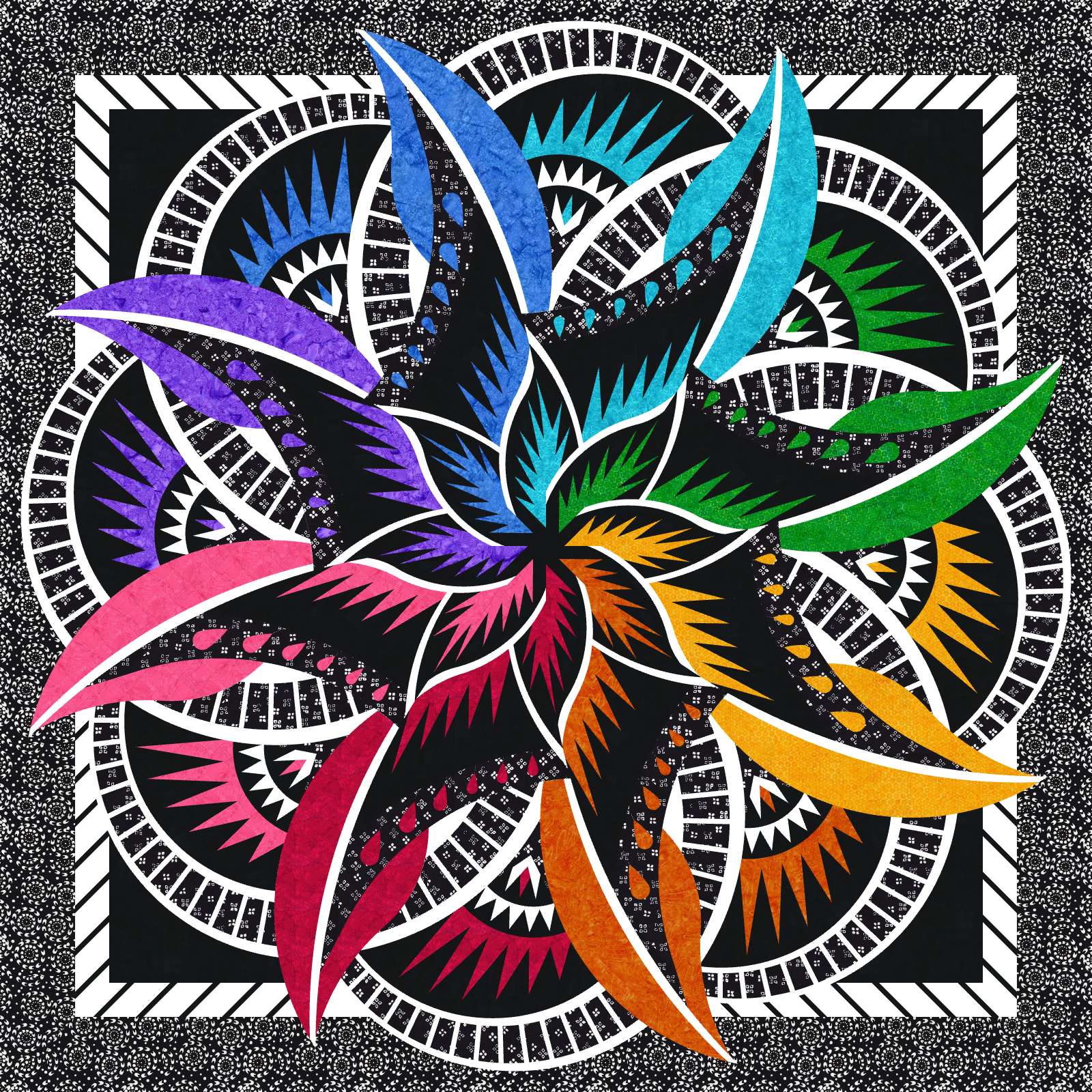 Black & White with a rainbow of color. Kits are cut by unit and all fabrics are labeled.