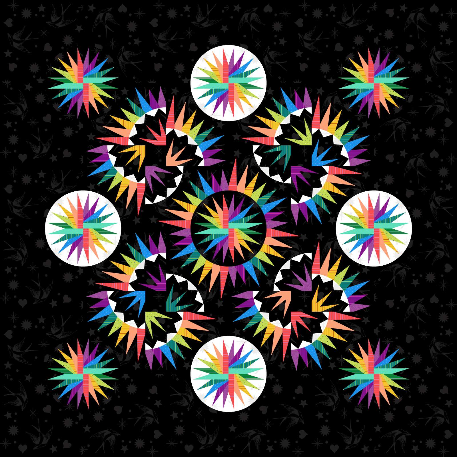 This kit includes fabric for the quilt top plus binding. Backing not included. This kit also includes a paper pattern.