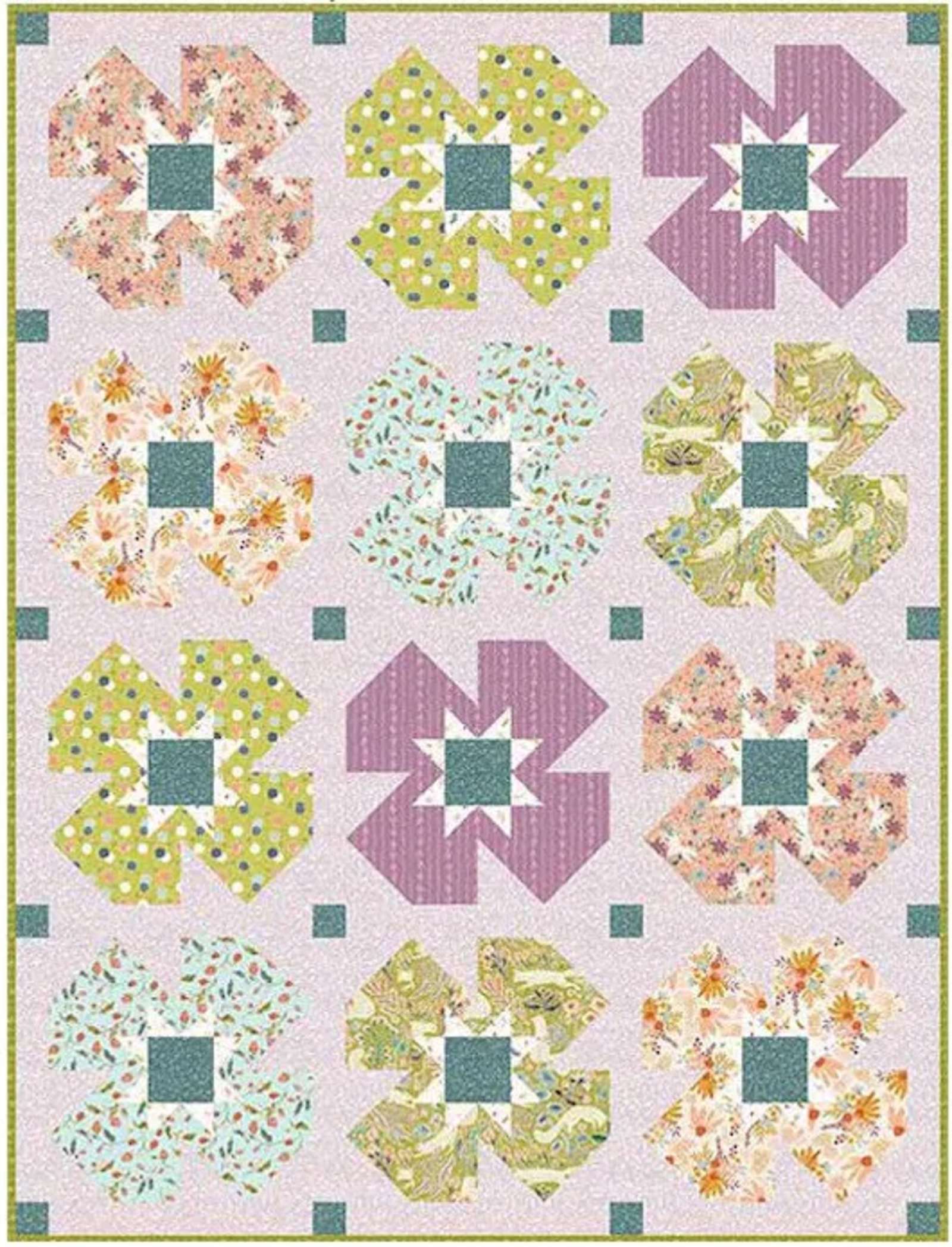 This kit features the fabric line Thicket and Bramble by FIGO. Pattern is included and is also beginner friendly with a finished size of 56"x 74"