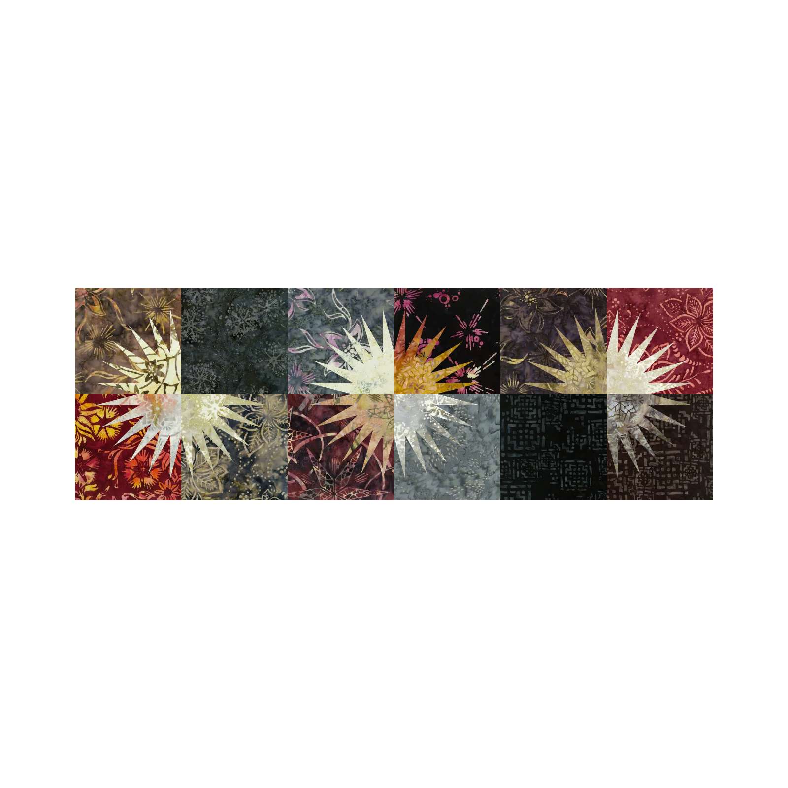 The Haystack Cookies is an introductory pattern by Quiltworx.com. This design includes (10) 10" squares, (2) 6-1/2" squares, and (10) 2-1/2" strips. It also includes the pattern and foundation papers to make (1) Table Runner. There is no binding included in these kits.