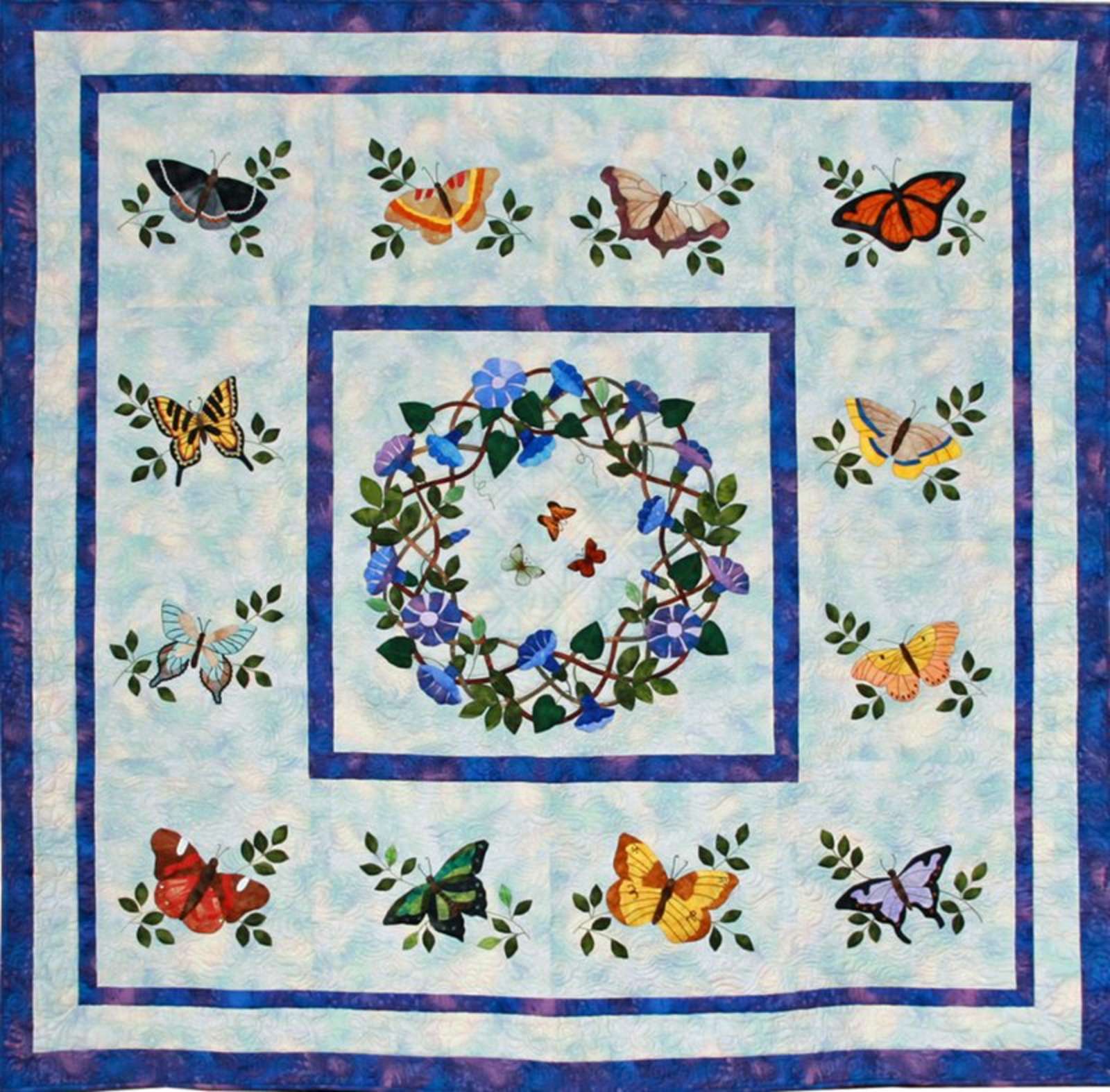 Designed by Cathy Van Bruggen Designs, this is an original applique pattern. Delicate butterflies are so charming and are admired all over the world. These butterfly blocks can be as simple or as complex as you wish. Learn how to APPLIQUE The Easy Way while making this lovely quilt. Pattern, fabric with border and binding, included.