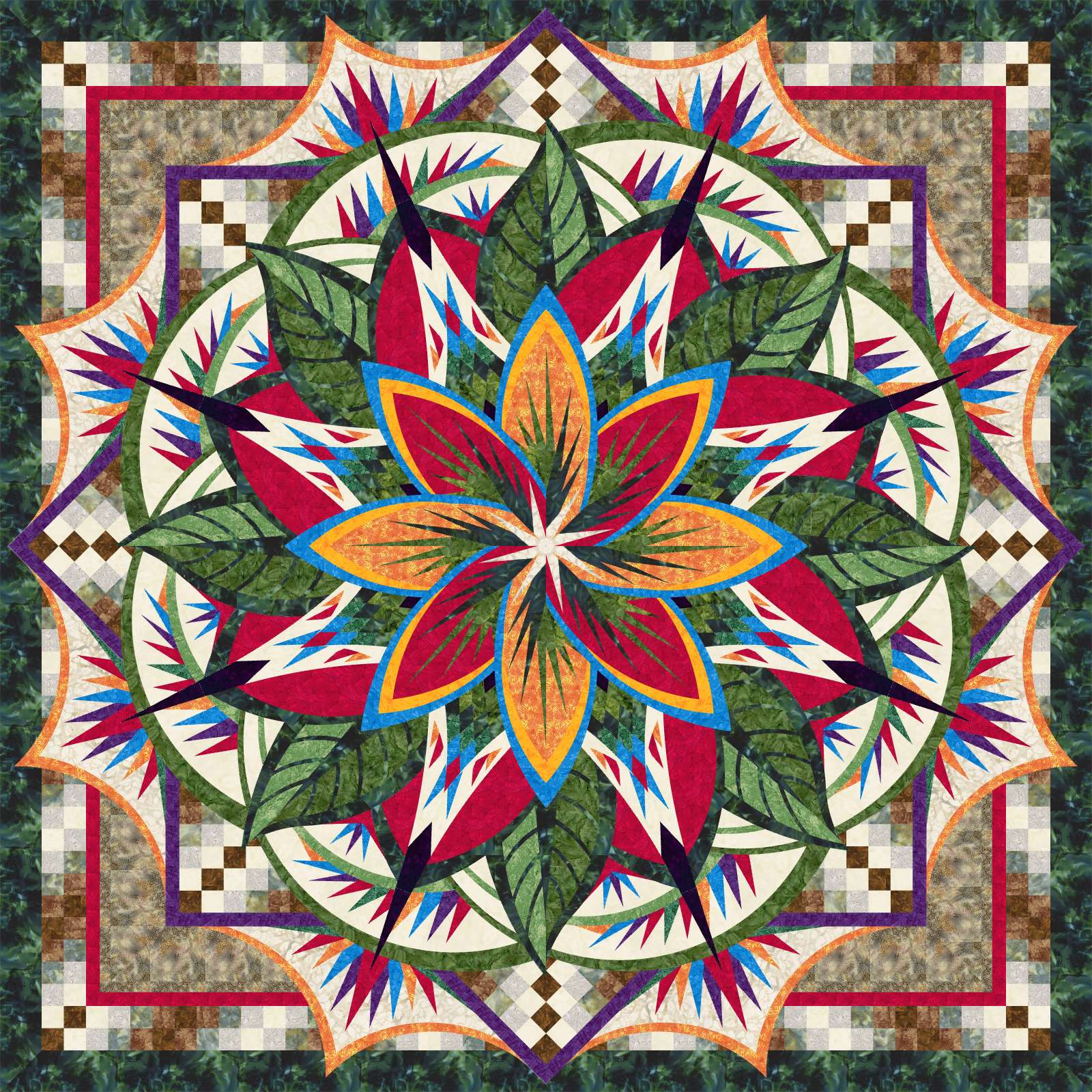 Jeweled 99" x 99" Queen - Copyright The highly anticipated Jungle Magnolia is here! ❤ This quilt, is the one Judy made. After hundreds of colorways in Quiltster, we created this colorway as our first sample. The collection is by Hoffman Fabrics with a little Banyan thrown in. This quilt will make you stop...and stare. It's perfect.