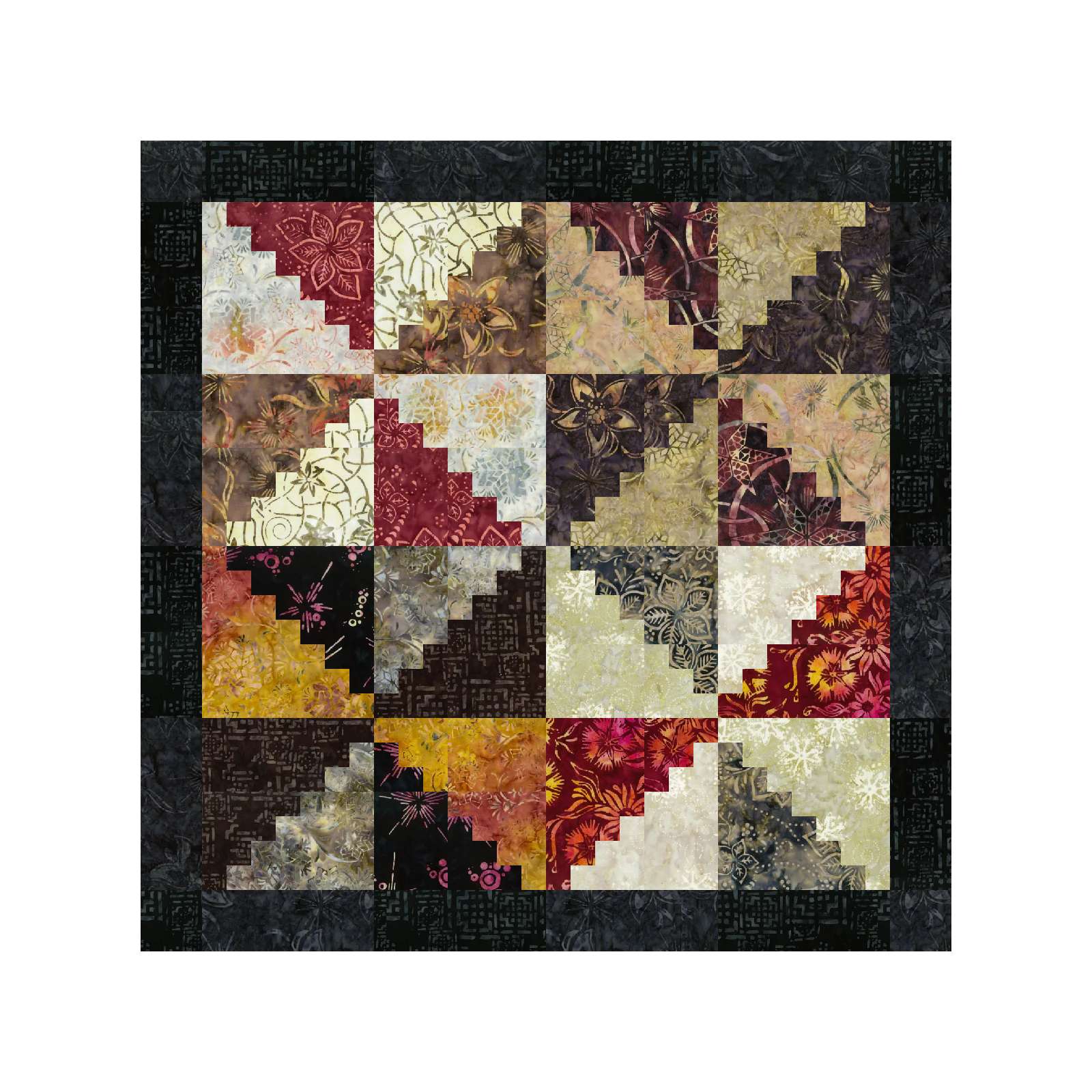 Cabin Cuddlebugs is a Quiltworx Foundation Paper piecing pattern called a Stashbuster. It is designed as a beginner project. The colorway shown is out of the Maple Leaf and Coffee House Tonga Batik Mini Collection. This colorway was created by Judel Niemeyer in Quiltster and has 2-3/8 Yards of fabric. The design does not include binding. It can be purchased with or without the pattern.