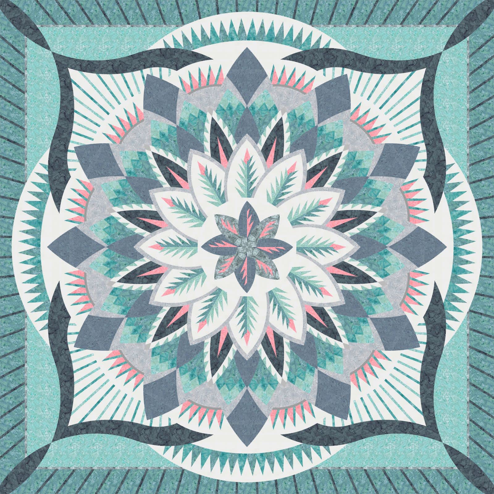 This quilt kit contains all the fabric, 18.67 yards for the Wall size (80x80) needed to complete the top and the complete pattern as published by Quiltworx that includes the papers, instructions and ruler. Kit does not include the fabric for backing, binding or the batting.