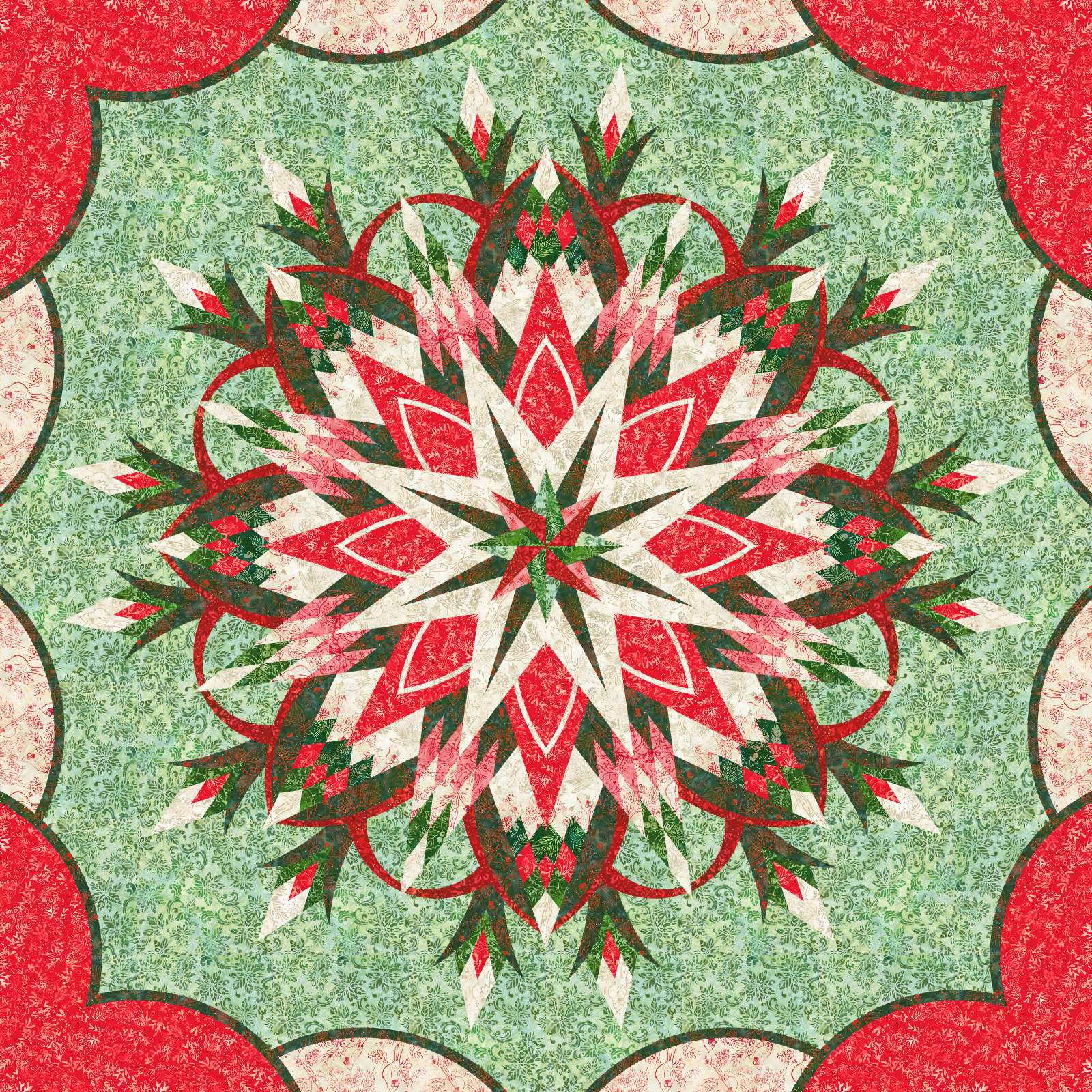Cabaret was designed in Quiltster by Last Stitch Effort using the Kaufman "Joyful Holidays" collection.  This includes backing fabric from the collection.  This colorway does not match the pattern coversheet.  All fabrics are labeled with Quiltster-assigned codes.  You will need to use the Unit Charts to match up the fabrics instead of the tables on the back page of the pattern coversheet.