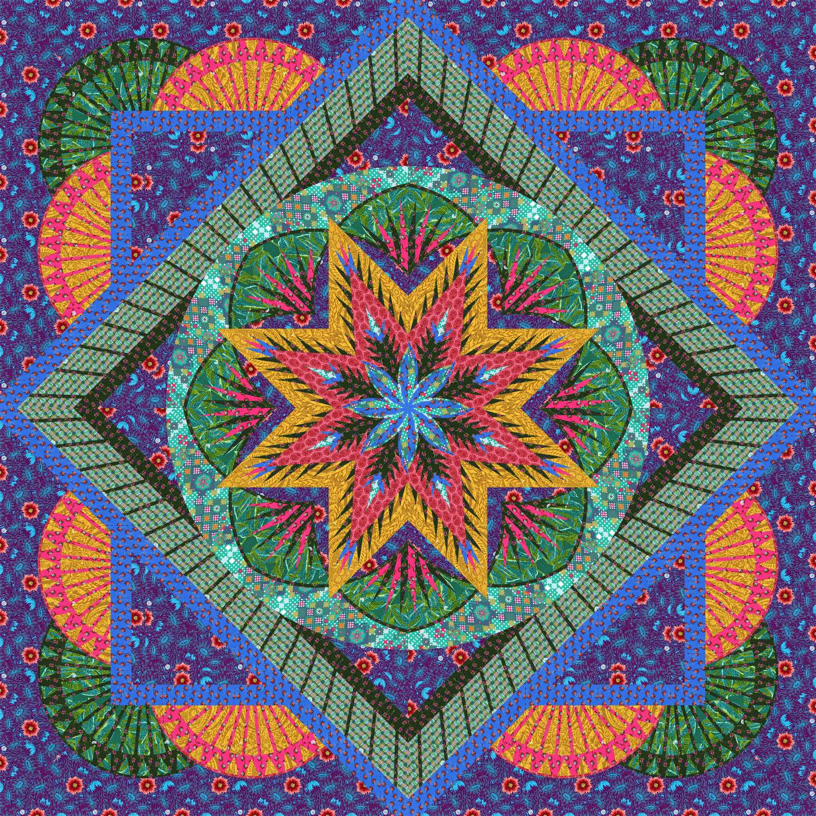 Honeycomb was designed in Quiltster using Anna Maria Horner fabrics from various collections.  This colorway does not match the pattern coversheet.  All fabrics are labeled with Quiltster-assigned codes.  You will need to use the Unit Charts to match up the fabrics instead of the tables on the back page of the pattern coversheet.
