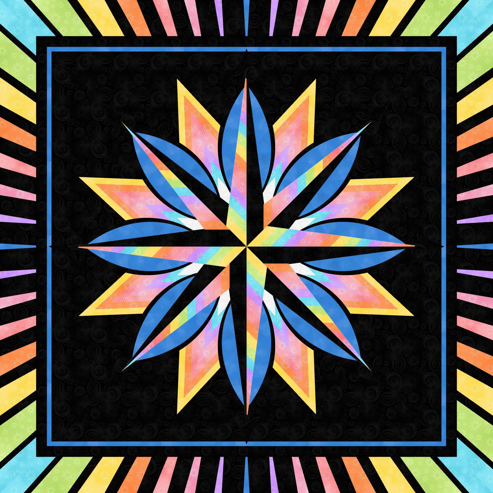 Harmony was designed in Quiltster by Last Stitch Effort using Colorstock fabric.  This kit includes Colorstock backing.  This colorway does not match the pattern coversheet.  All fabrics are labeled with Quiltster-assigned codes.  You will need to use the Unit Charts to match up the fabrics instead of the tables on the back page of the pattern coversheet.