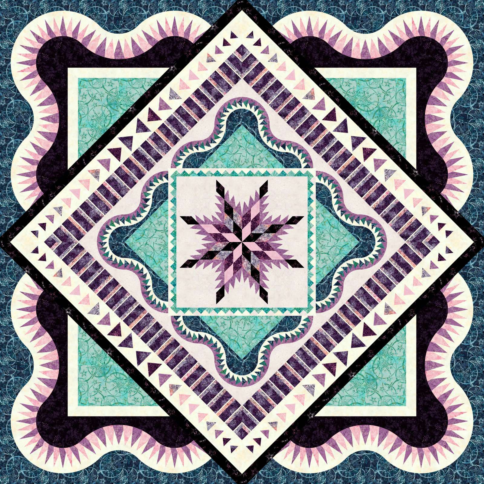If you love this colorway, you're going to love the fact that this pattern was designed specifically as part of 2024 inaugural release of our quarterly Quiltworx Box Program (large version). As a result, online video instruction for this pattern will be available on the Quiltworx YouTube channel starting in March of 2024! The exact dates are listed in the pattern. This kit makes a BIG king quilt. The finished project will be 118" masterpiece. This is made with the sage & heather collection by Timeless Treasures. Binding is included.