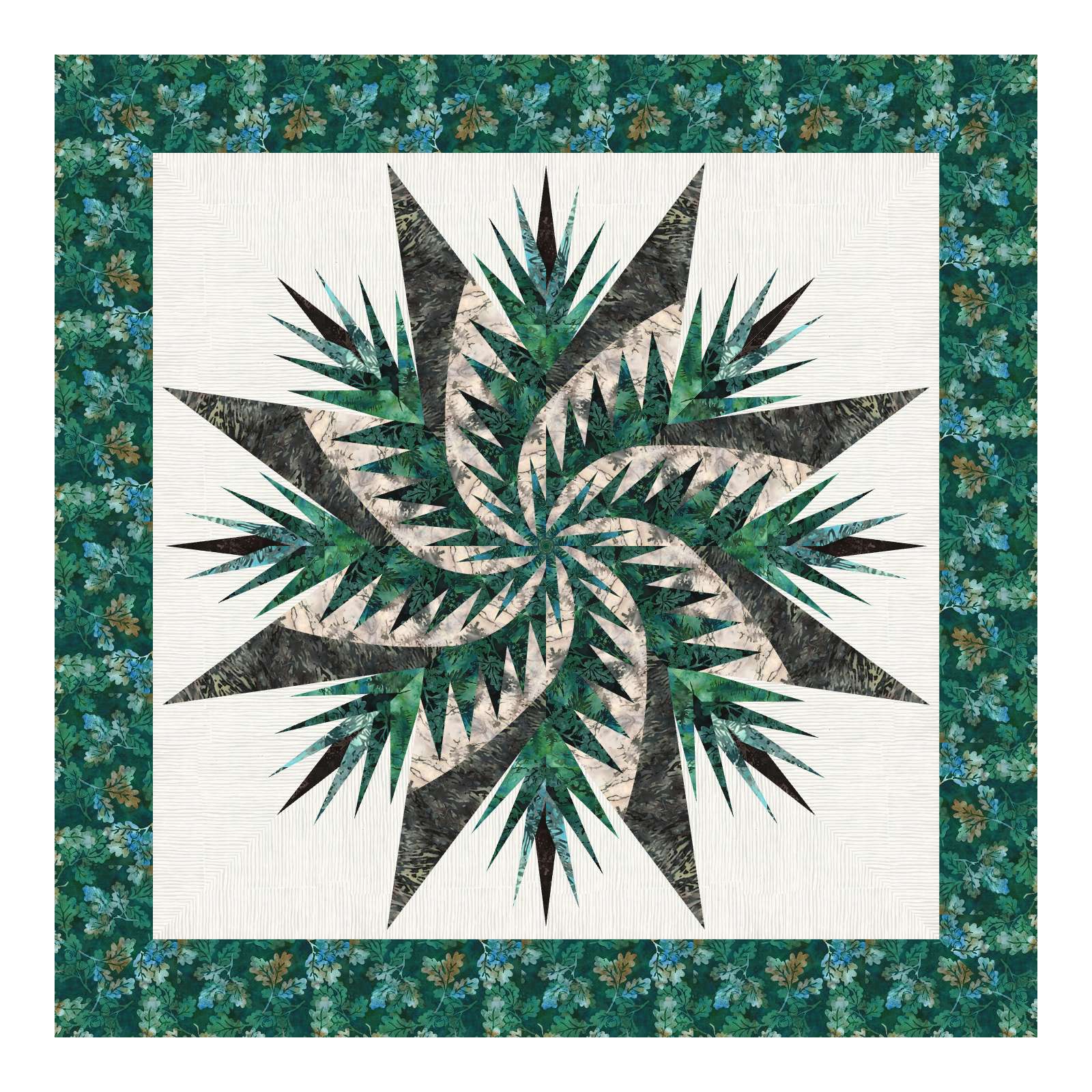 The Evergreen Fern is a fun, Intro pattern by Quiltworx.com. This kit includes fabrics from the new Woodland Batik Collection from McKenna Ryan and Hoffman Fabrics. The colorway was created by Judel Niemeyer using Quiltster. The kit includes 5-1/2 Yards of fabric, including binding and can be purchased with or without the pattern. The kit will be labeled with the correct fabric references and also matches the fabric colorway on the coversheet of the latest pattern (released in April 2025). You can use previous versions of the pattern as well. If you do this, kitting sheets for this colorway are included on the Quiltworx Website listing for Evergreen Fern.