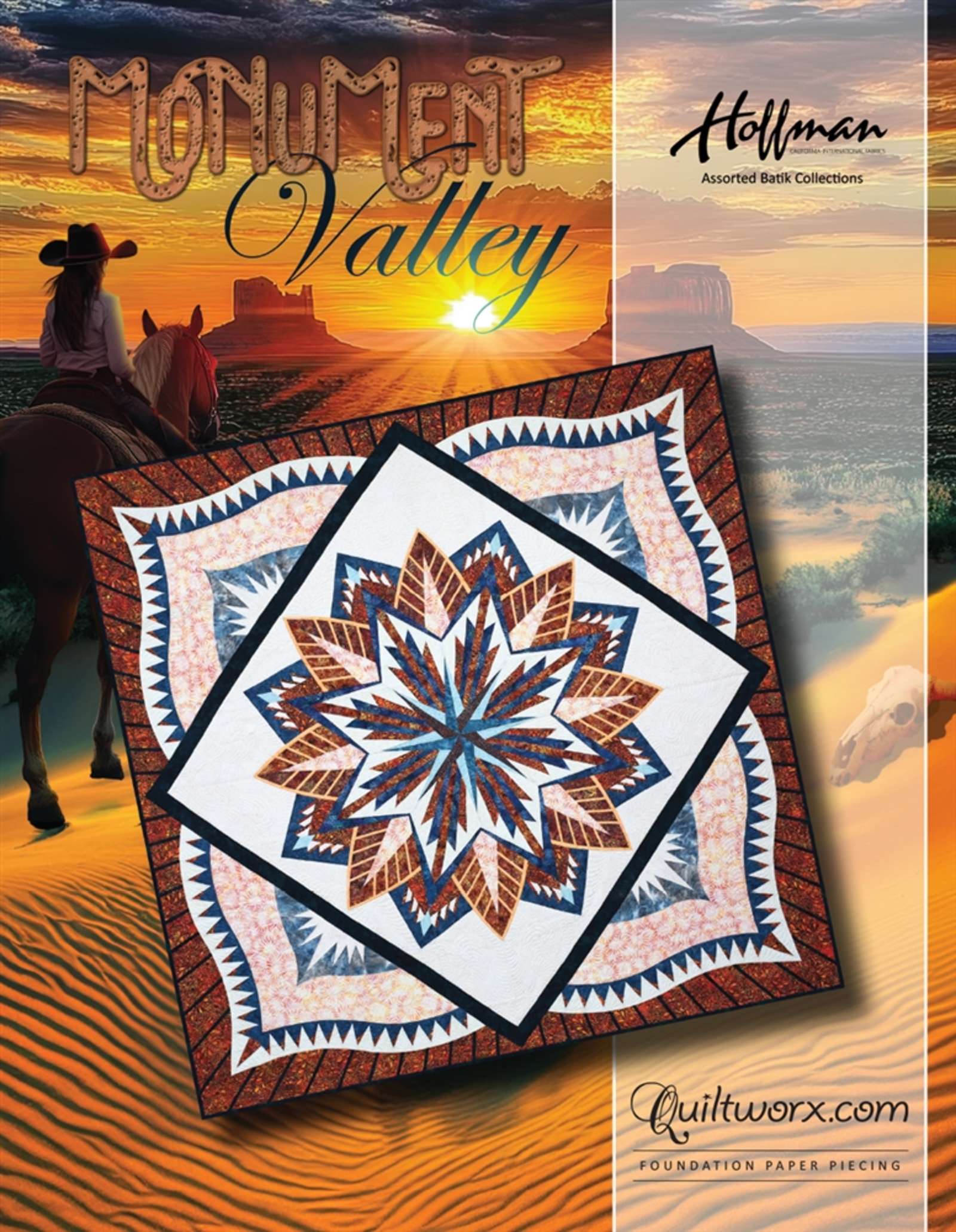 You will want to show off this gorgeous quilt on your bed. This beautiful quilt kit is names Monument Valley. The fabrics are the exact fabrics listed on the quilt pattern. The quilt is a Queen size 99 x 99.