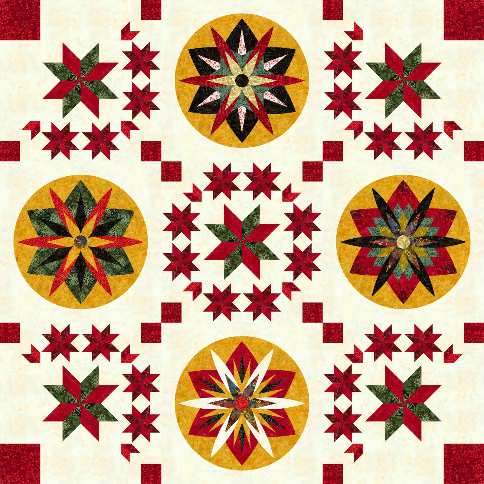 Home for the Holidays is a foundation paper pieced pattern by Quiltworx.com. This design was created by Judel Niemeyer. It was created with the Quiltworx Tonga Batik Collection, Cedar and Sleighbells correction in mind. It is intended to be a beginner design with simple blocks, a small sampling of techniques from across Quiltworx's pattern line, and a warm holiday feel that would make a perfect quilt for curling up on a couch, watching Christmas movies, and drinking your favorite Hot Cocoa. The sample uses 15 yards of fabric, including the binding, and can be purchased with or without the pattern.