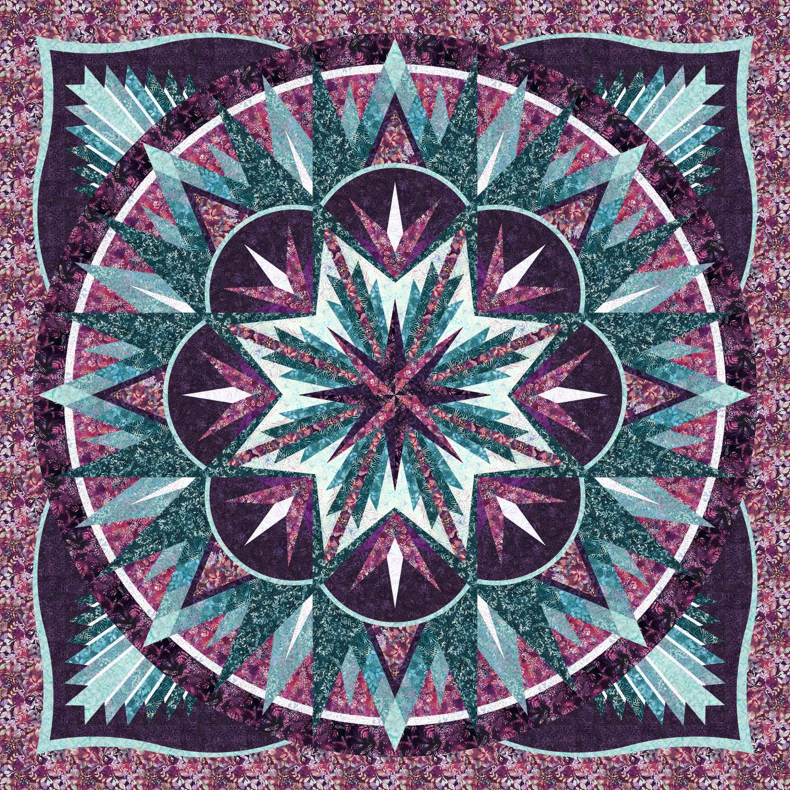 Congo Star Mixer- Magenta Magic colorway Kit includes: Patterns and fabrics for the quilt top including binding Finished size: 96" square Backing not included: need 9 yd or 3 yd widebacking