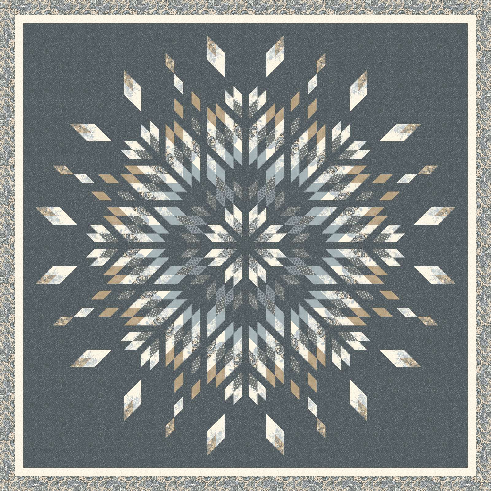 The Chantilly Star is a foundation paper pieced pattern by Quiltworx.com. It is shown here in fabrics used for the cover quilt from Marcus Fabrics from the Franklin House collection designed by Dolores Smith. The quilt requires 16 yards of fabric and finishes to 100" square. The kits include binding and can be purchased with or without the pattern.