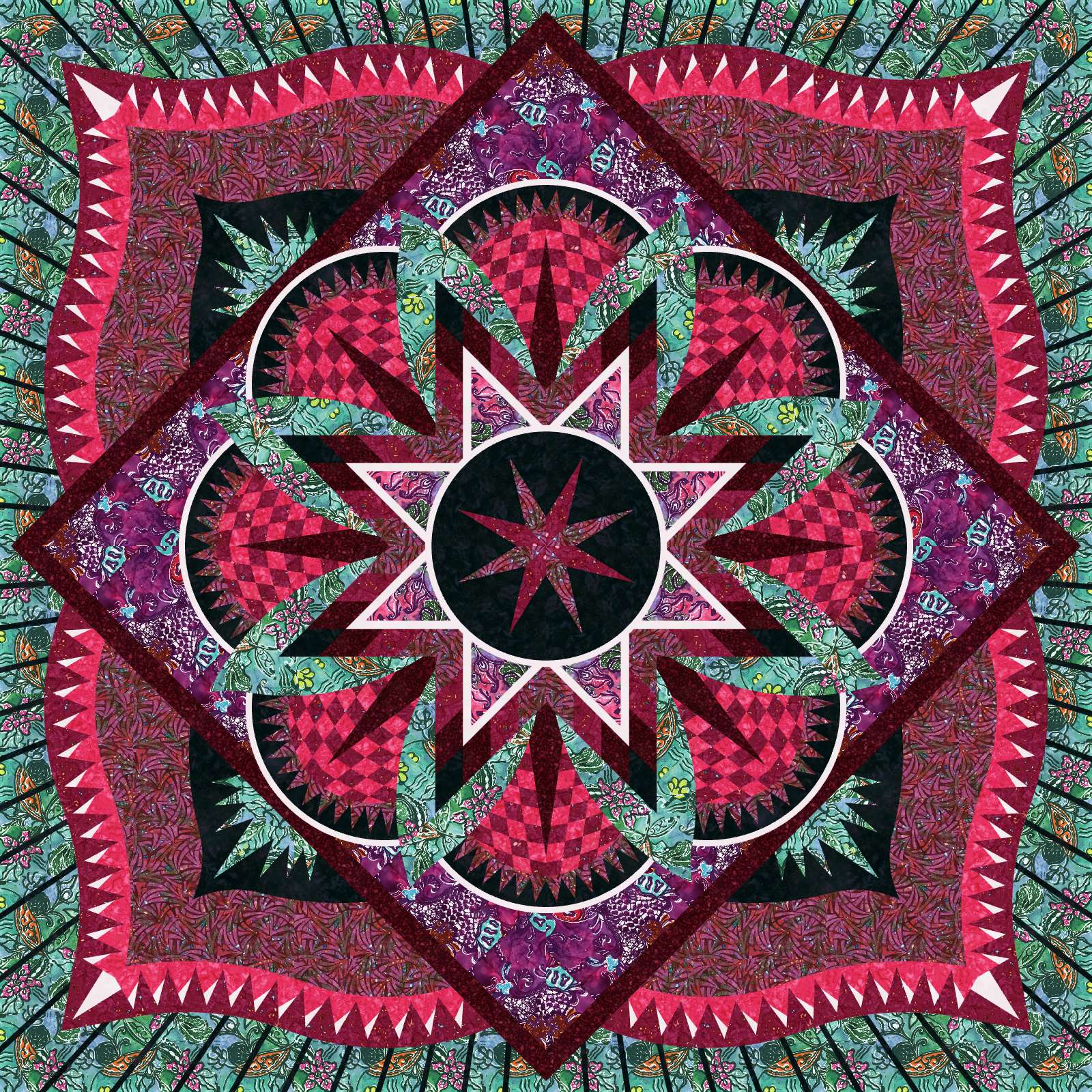 The Artisan Traditions is a foundation paper pieced pattern by Quiltworx.com. It is shown here in one of the original colorways featured in the pattern using Expressions Batiks from Riley Blake. The colorway was created by Judel Niemeyer in Quiltster. The kit includes 21-5/8 yards of fabric, including the binding and can be purchased with or without the pattern.