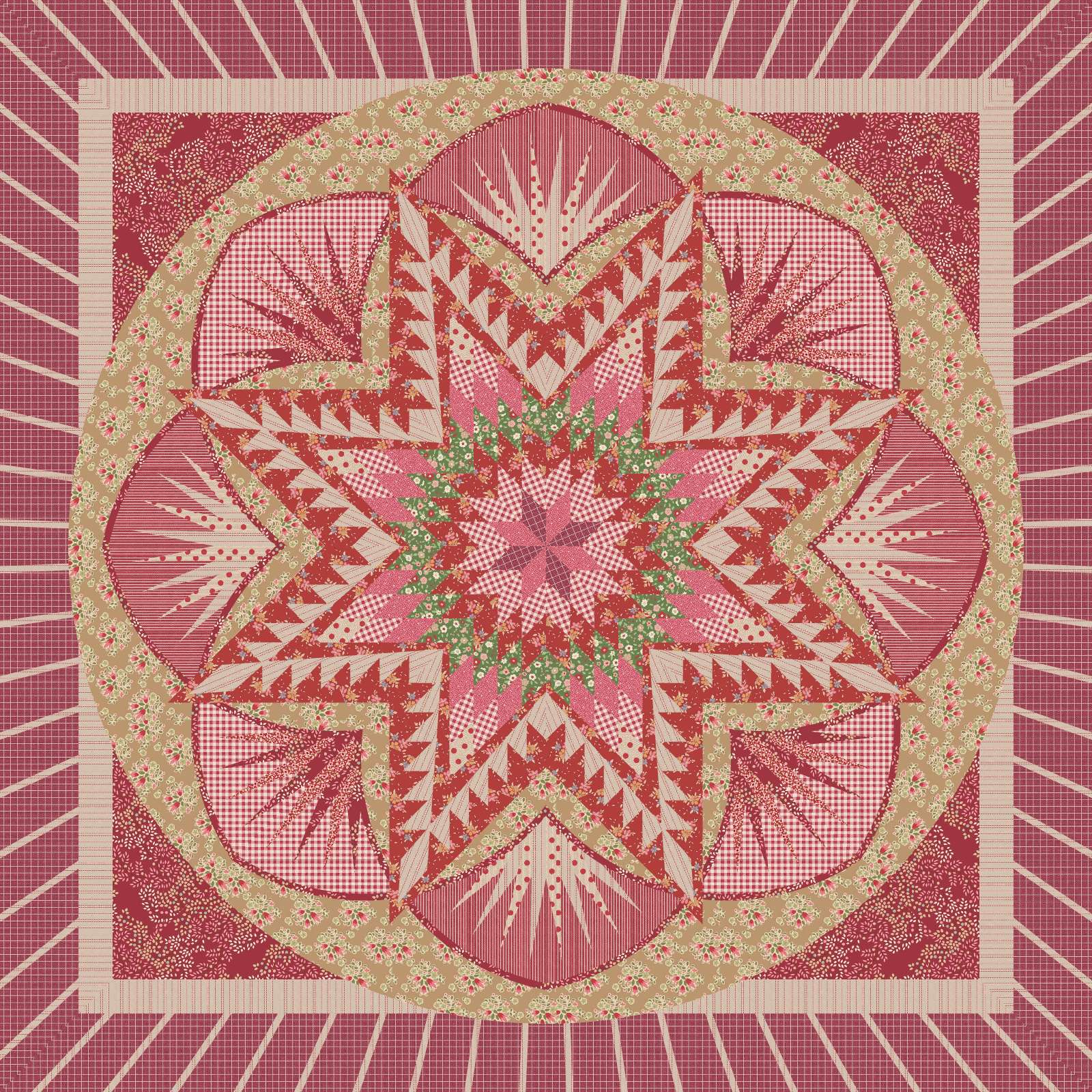 Squared to 80 x 80 using all Tilda fabrics;  binding matches green print in center;  includes backing