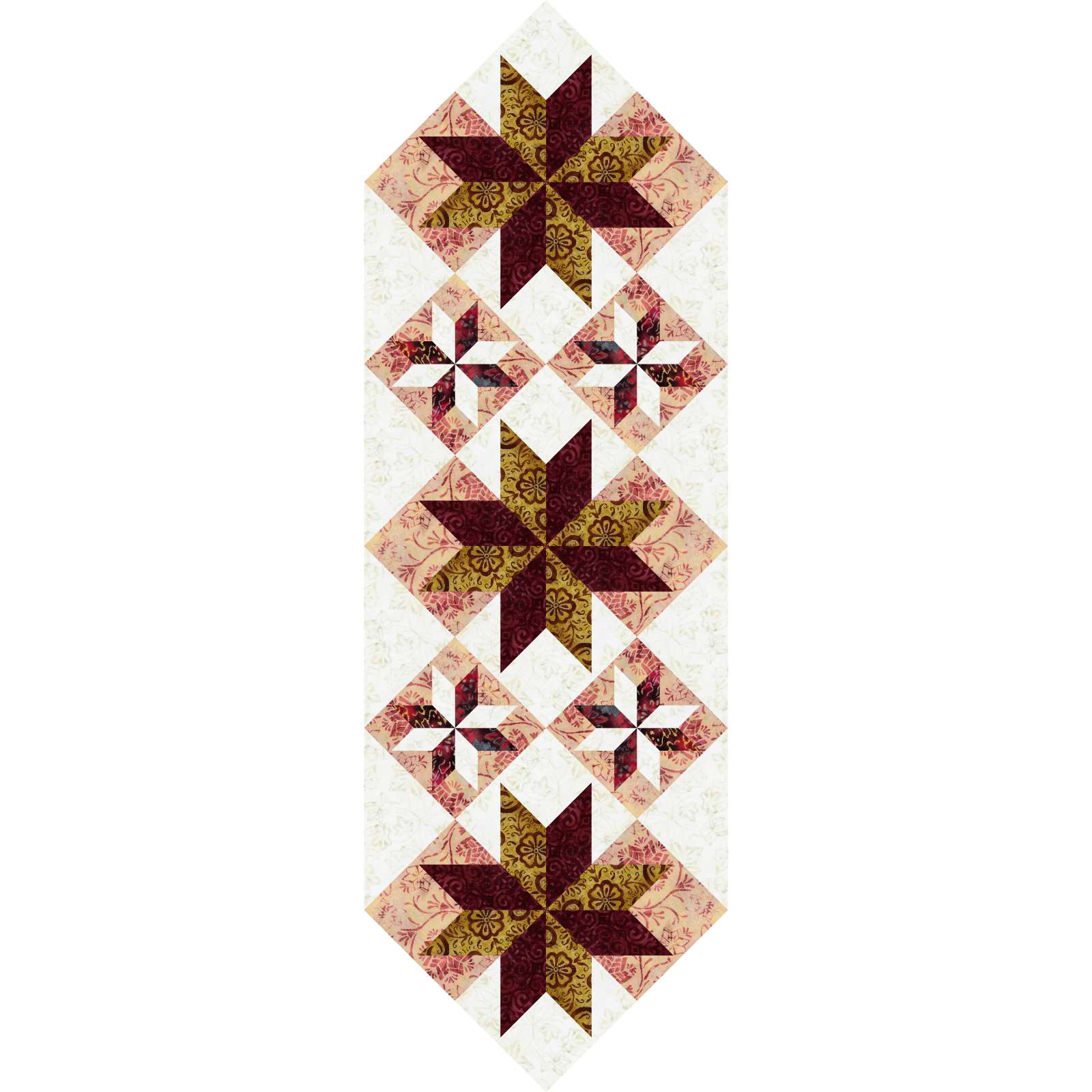 The Mini Stars Table Runner kit is a foundation paper pieced pattern by Quiltworx.com. This kit was created by Judel Niemeyer in Quiltster using 2 - 7/8 total yards of Timeless Treasures' Tonga Apple Basket fabric line. This kit can be purchased with or without the pattern and includes the binding.