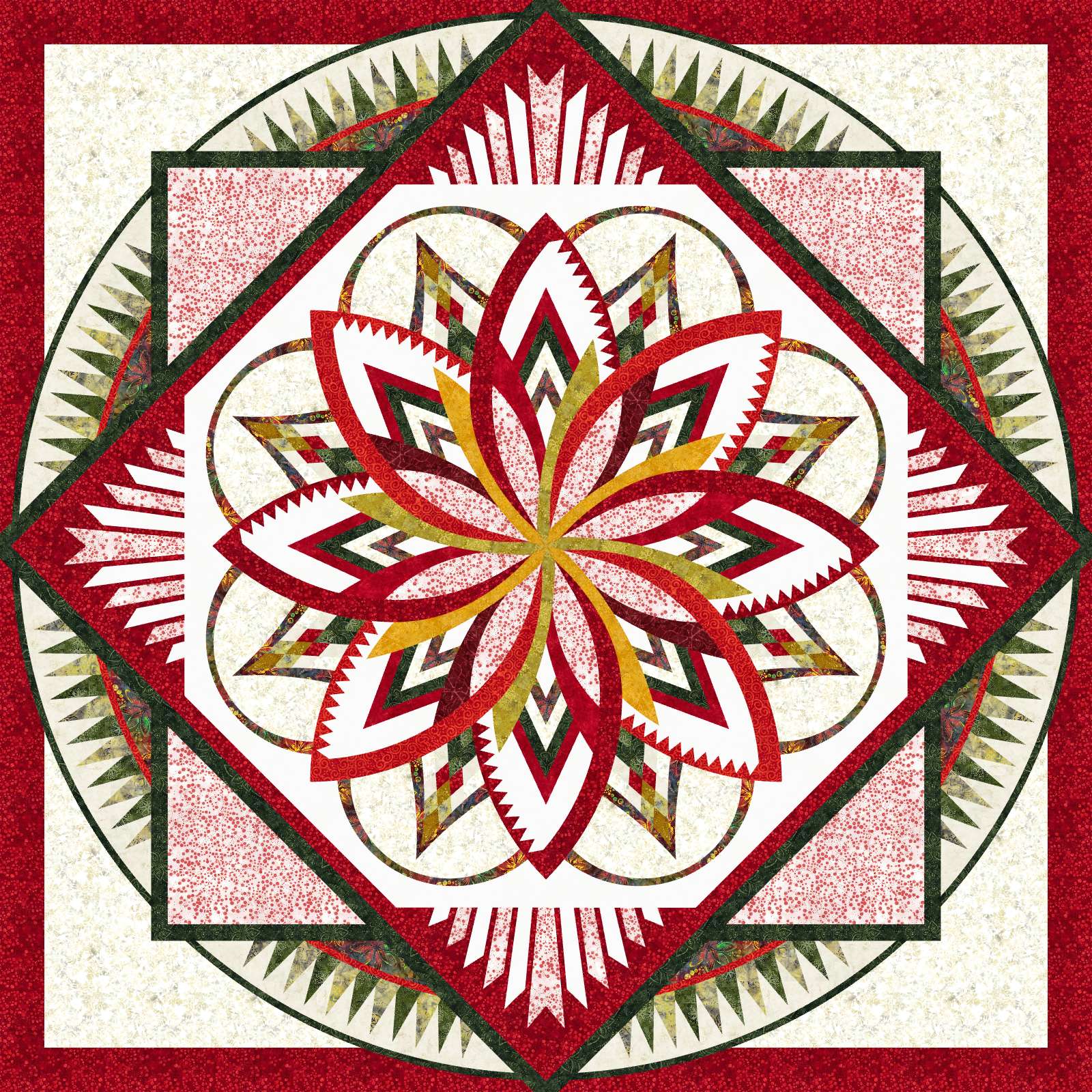 Peppermint Twist Cogs & Blocks Queen- Cedar & Sleigh bells colorway kit includes fabrics for quilt top including binding...and patterns depending on option selected. If you choose Fabric only you will need both the Peppermint pattern and the Cogs & Blocks Queen extension pattern.