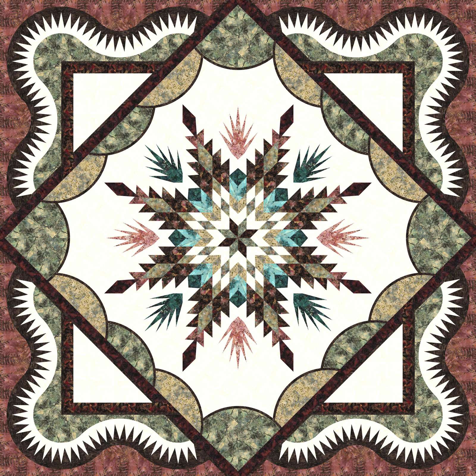 Bough of Holly: QU Boise Colorway Kit includes: Fabric for quilt top including binding and pattern depending on option selected Finished Size: 99" sq Backing not included: need 9 1/4yd backing or 3 1/8 yd of a wide backing