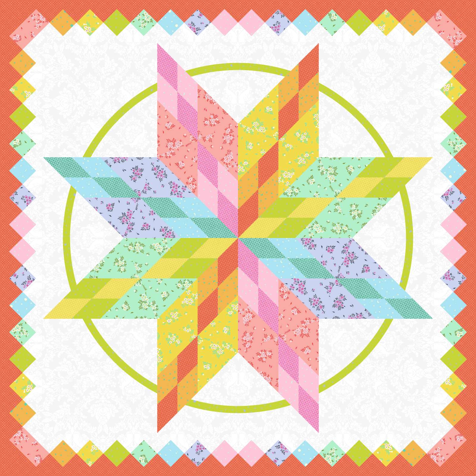 The PopStar kit is a foundation paper pieced pattern by Quiltworx.com. This kit was created by Judel Niemeyer in Quiltster using 5-1/2 total yards of the True Colors 2025 from Free Spirit. This kit includes the binding and can be purchased with or without the pattern.
