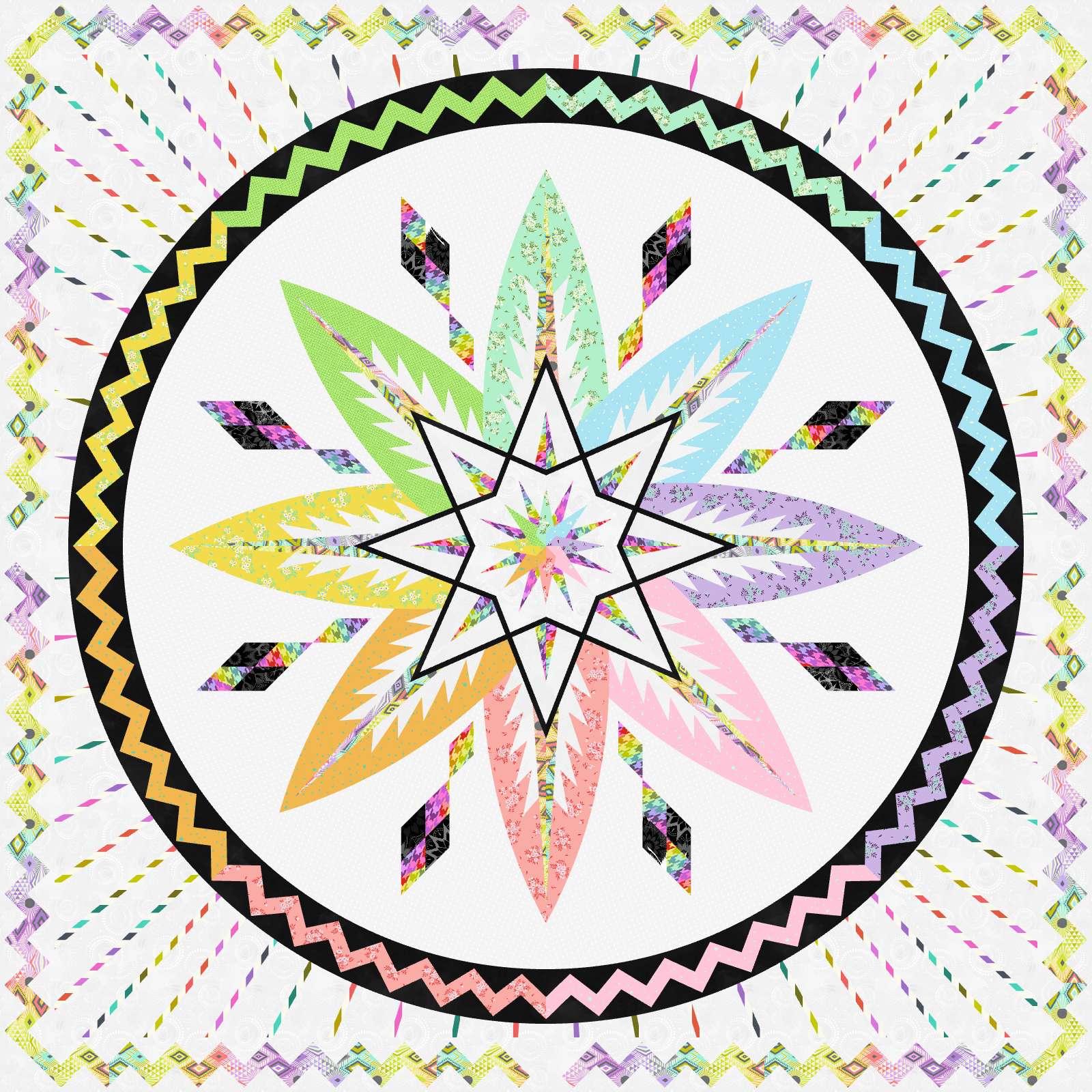 The Butterfly Garden kit is a foundation paper pieced pattern by Quiltworx.com. This kit was created by Judel Niemeyer in Quiltster using 22 total yards of the True Colors 2025 from Free Spirit. This kit includes the binding and can be purchased with or without the pattern.