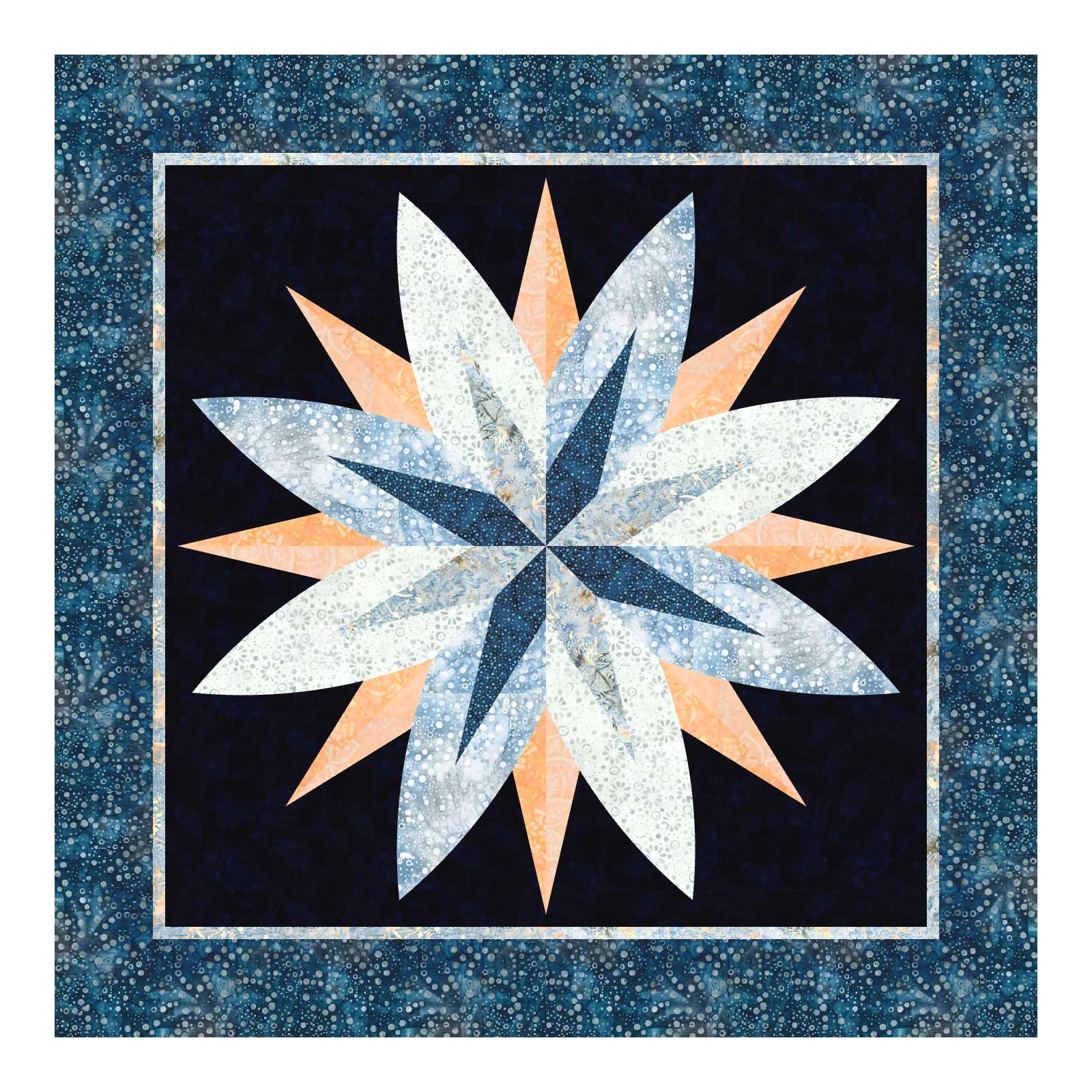 Lotus Flower Kit: Blushing Blueberries Colorway Includes: Fabrics to complete quilt top including the Binding, Pattern with Foundations (depending on option selected) Finished Size: 40" sq Judy Niemeyer Paper Piecing Pattern Backing not included, need 2 3/4yd backing