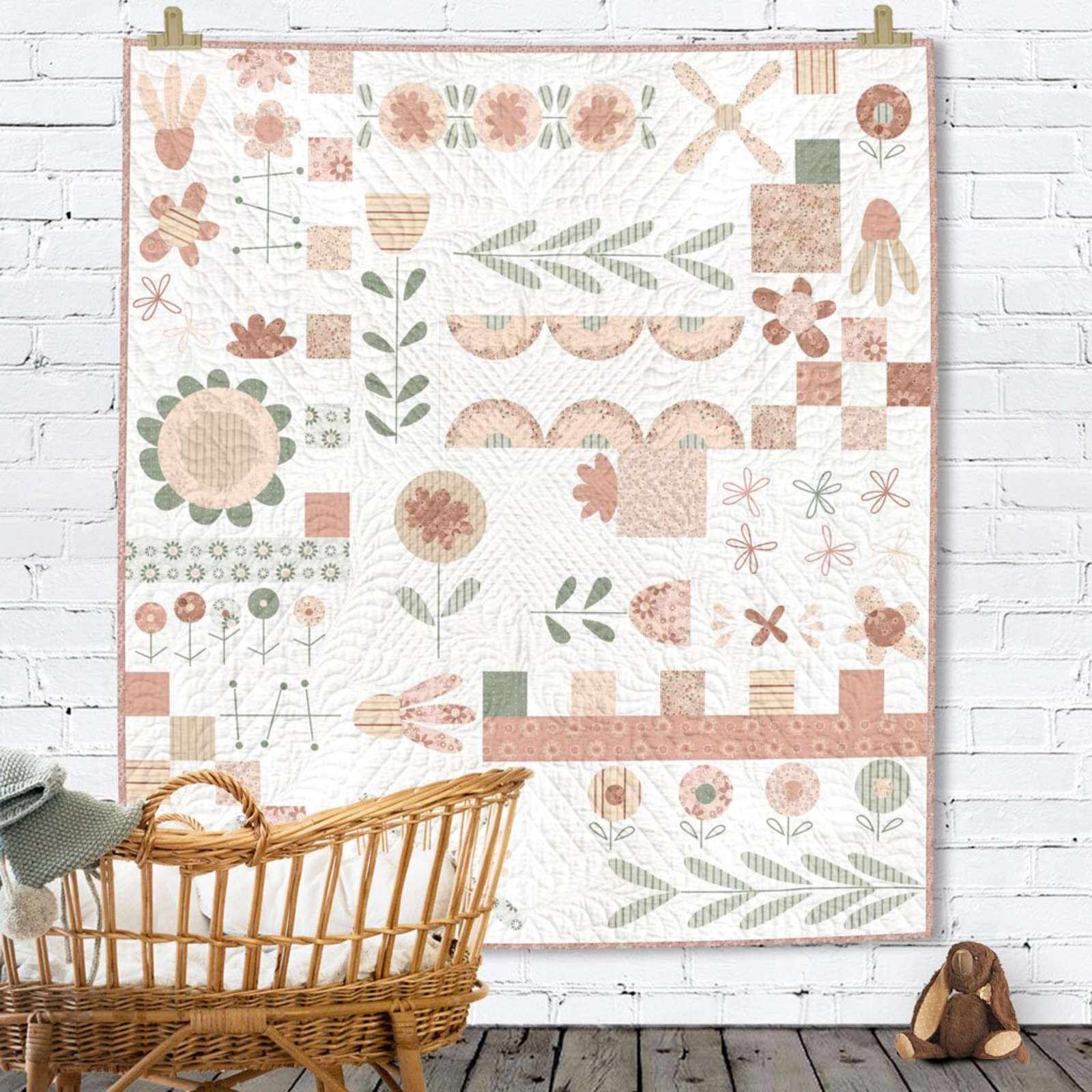 This is a traditional pieced and laser cut applique quilt made with cotton fabrics from Meags & Me. Grove BOM Full Kit includes: Pattern, Laser cut applique and Fabric to complete the quilt top including binding. Finished Size: 54" x 60" Pattern By: Meags & Me Backing not included: need 3 1/2 yd