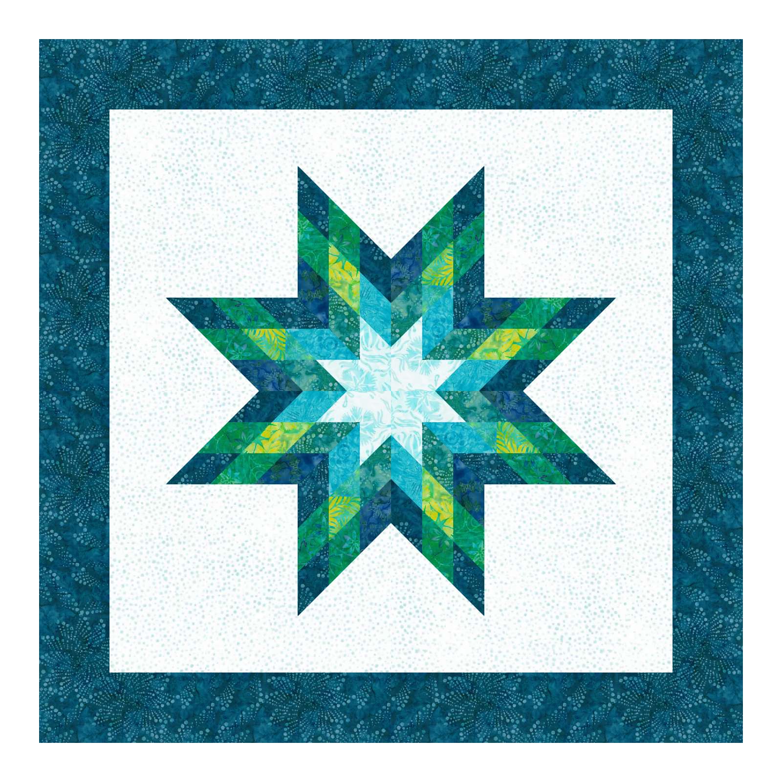 The Starbaby is a foundation paper pieced project by Quiltworx.com. It includes 2-7/8 yards of fabric from an assortment of batiks from different collections, which includes the binding. It can be purchased with or without the pattern.