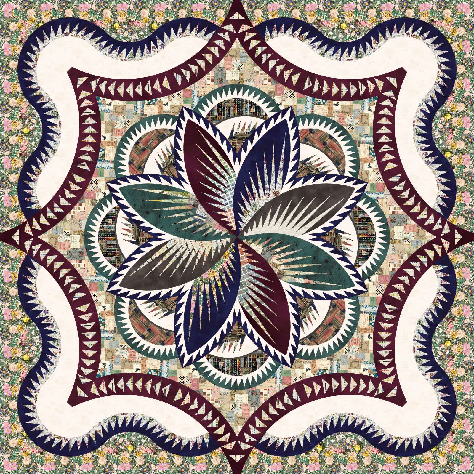 The Hosta Hues kit is a foundation paper pieced mixer design by Quiltworx. The colorway designed by Judel Niemeyer features fabrics from the Tim Holtz Multi Palette Collection celebrating his ongoing Palette Collection Program. This kit contains everything you need, including detailed pattern instructions, paper templates, and fabrics, to complete this project. It comes with 26 5/8 yd of fabrics including binding. The Fabric Only option is not available for this kit. We're offering the *pattern* at half price with the purchase of the kit until they're gone!