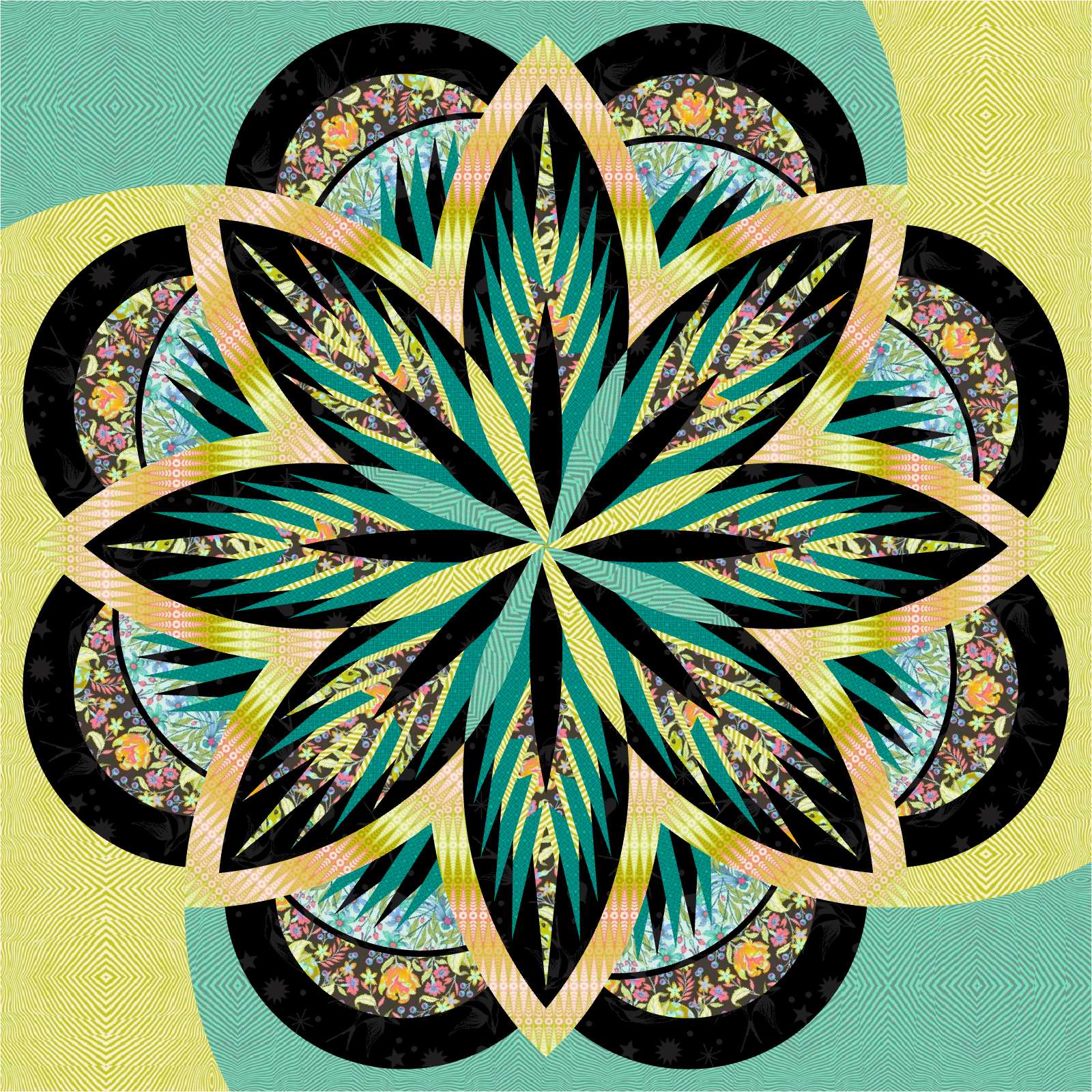 Look at the spin on this Sea Holly with its swirling Tula Pink colors. Tula's Moon Garden collection is out of print, which makes this kit a great find and in fabulous color!