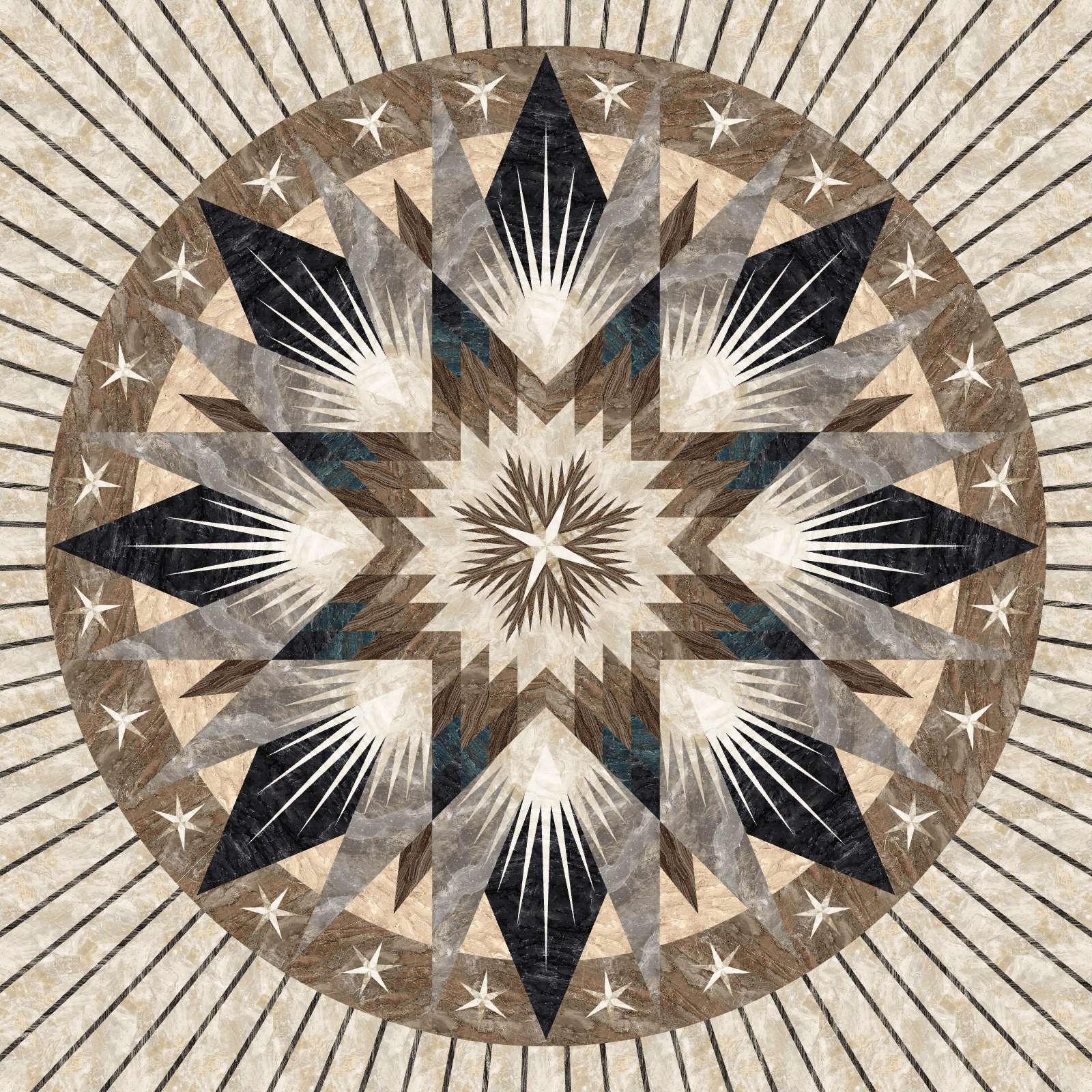 This is a ShowStopper in person! I had a student complete it when I first offered this kit. This kit was my personal one, but I just don't have time to make it. Someone else really should! These amazing Stonehenge Surfaces fabrics make this look like an exquisite marble floor. Plus this is a big 96" x 96" quilt that could make a great statement on a bed!