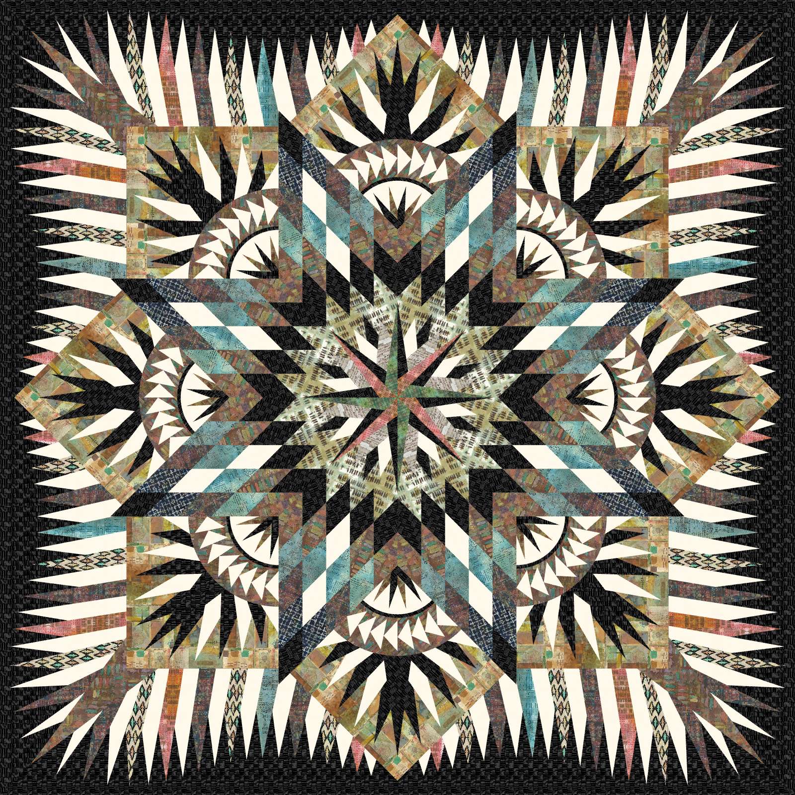 PRAIRIE STAR is a fan favorite. It has all the elements you expect from a Judy Niemeyer design in a great size that can be used on a bed or as a big snuggle up quilt. You could also put it on a large wall for a great conversation piece. Fabrics in this kit are Seth Apter’s On The Mark collection from Free Spirit Fabrics.