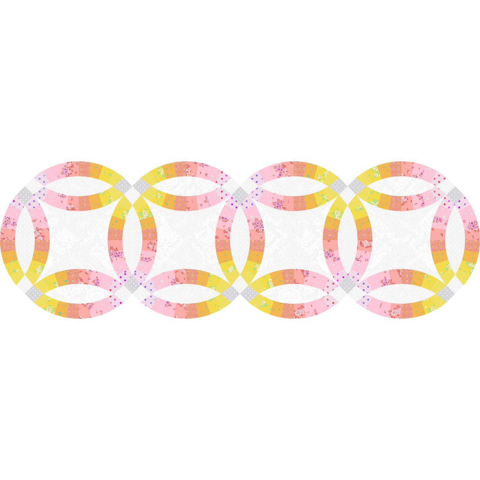 The Wedding Ring Table Runner is a foundation paper pieced pattern by Quiltworx.com. This design is featured in the Quarter 1 2026 Box Program. And, a workshop will be held on April 8th on the Quiltworx Youtube Channel to teach you how to make it. The fabric shown here is from the Tula Pink 2025 True Colors Collection. There is 2-1/3 yards of fabric included, which includes the binding, and it can be purchased with or without the pattern.
