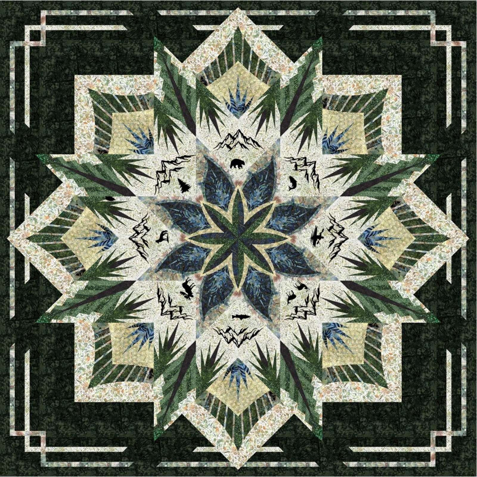 Kali Mixer – Our Backyard Colorway Quilt Kit Create a striking Quiltworx masterpiece with the Kali Mixer – Our Backyard Colorway Quilt Kit, an exclusive Stitch n’ Snip design blending precision piecing with bold visual impact. Featuring a curated palette and dynamic mixer layout, this project showcases Judy Niemeyer’s signature foundation paper-piecing techniques at their finest—perfect for confident beginners through advanced quilters. Want a different look? The different Diamond Units can be sewn several ways to give your quilt unique visual illusions—take a peek at the sample photos for ideas! Same Kit, same unit coloring...just sew into the quilt in different orientations. Exclusive Laser-Cut Silhouette For a truly unique artistic finish, this 96" Kali Mixer Kit has an upgrade laser-cut appliqué silhouettes featuring mountain scenes and woodland animals. These precision-cut elements layer beautifully over the mixer design, adding depth, dimension, and a signature Pacific Northwest flair. Perfect for quilters who want to transform their quilt into a landscape-inspired showpiece. Each kit is organized into clearly labeled fabric packets to keep your workflow smooth and stress-free as you assemble points, arcs, starbursts, and geometric motifs that define the Kali Mixer aesthetic. Kit Includes: Fabric for quilt top in 5 Unit Packets, including binding Patterns Techniques: Quiltworx Foundation Paper Piecing Finished Size: 96" square Laser cut package Backing Requirements (Not Included): 9 yards of 44" fabric for Queen OR 3 yards of wide backing for Queen size