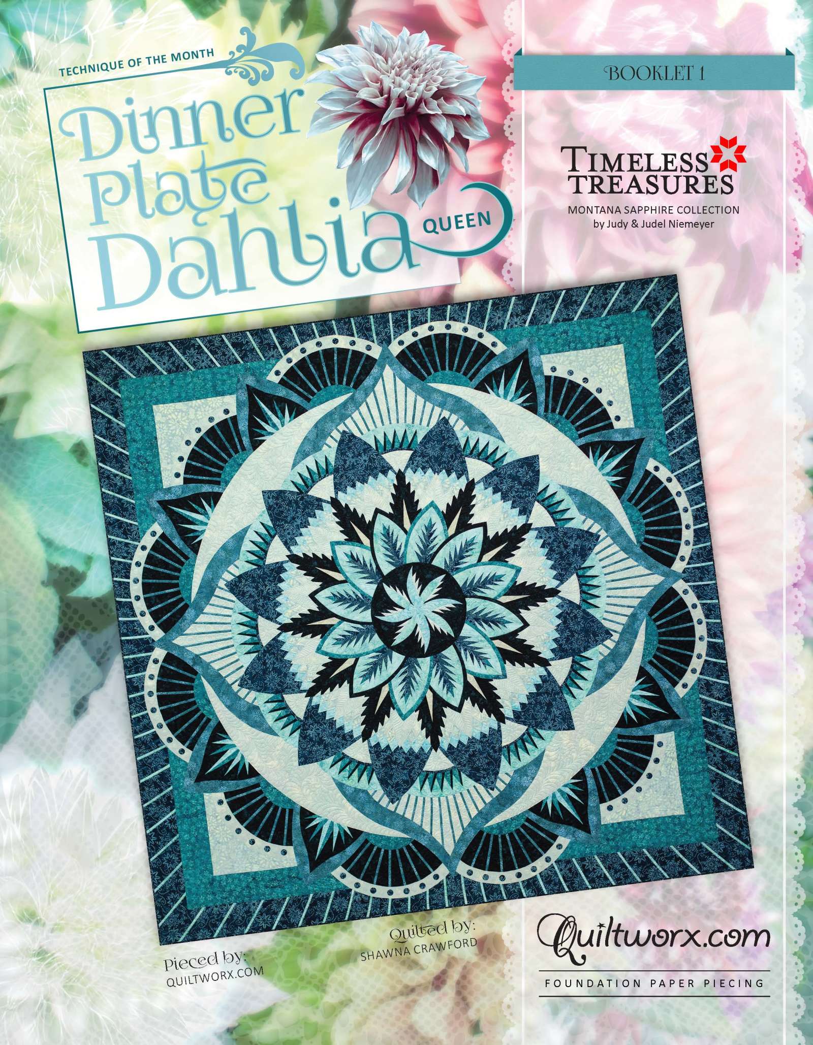 The Dinner Plate Dahlia is the 2019 Technique of the Month pattern. Create your own colorway using our digital quilt planner to make sure you love the look of your finished quilt before starting to sew! The Quiltworx Technique of the Month program launches every two years. The featured pattern is beautifully designed using a wide-range of techniques created by Judy Niemeyer which can be used in all of her foundation paper-pieced patterns. This program is taught by Quiltworx Certified Shops and Certified Instructors and the may be purchased solely through them, some of whom are suppliers in our Marketplace.
