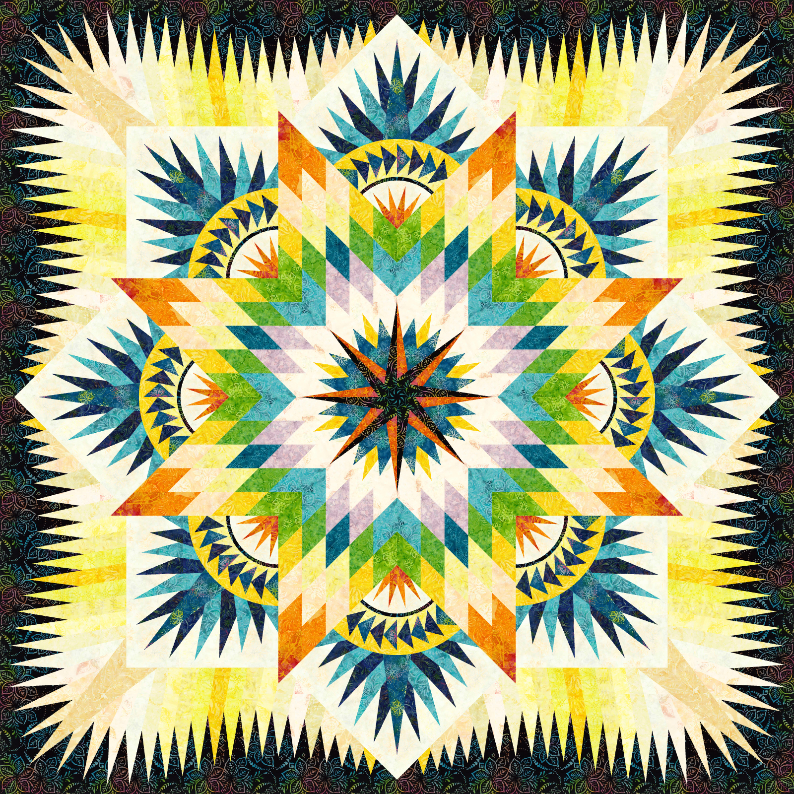 The Prairie Star pattern is a Quiltworx classic, first published as the Hawaiian Star, then republished as the Prairie Star, updated again in 2014, and has just gone through another update. The latest version of the pattern does have some differences to previous versions and is not compatible. The size has changed just slightly, but the changes have mostly come from updates to piecing techniques, providing units that have more color options, and elminating the use of Y-seams for final assembly. It includes 3 distinct groups, comprised of (8) Center Diamonds in a Group A, (8) 16” Squares in a Group B, and border blocks that result in an 85” Square quilt as Group C..