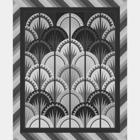 The CLAMSHELL WALL, is a 62 x 76 inch paper pieced desigh by Quiltworx.com. This pattern requires paper piecing skills, curved paper piecing skills, and traditional assembly skills. It is available in Quiltster for you to audition fabrics and create your own color concept.