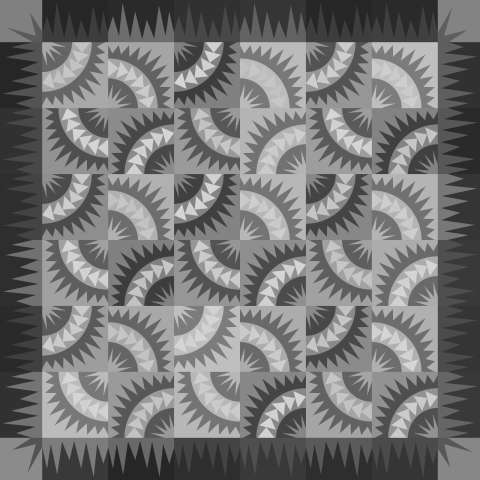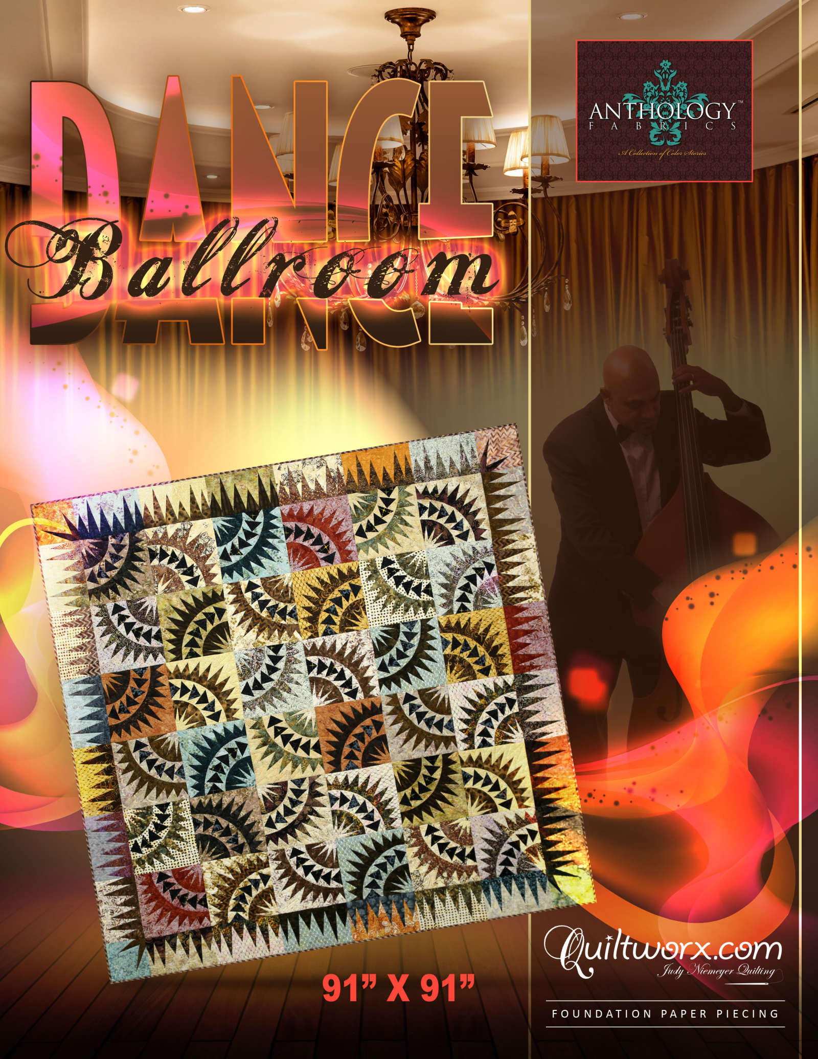 Bradley and Judy Niemeyer designed the layout and foundation pieces for Ballroom Dance. A collection of fabrics designed by Anthology fabrics were used to make the queen size sample shown on the cover page. The pattern is a queen size variation on the Dancing Batiks design, which is still available through Quiltworx.com as well. A sewing technique called foundation paper piecing is used when sewing the pieces onto the foundation units. Curved piecing and traditional piecing skills are required to join each unit after the foundation piecing is completed. Create your own unique colorway in Quiltster to make this pattern your own!