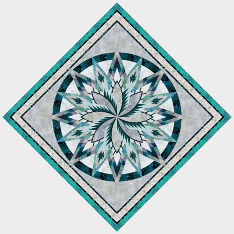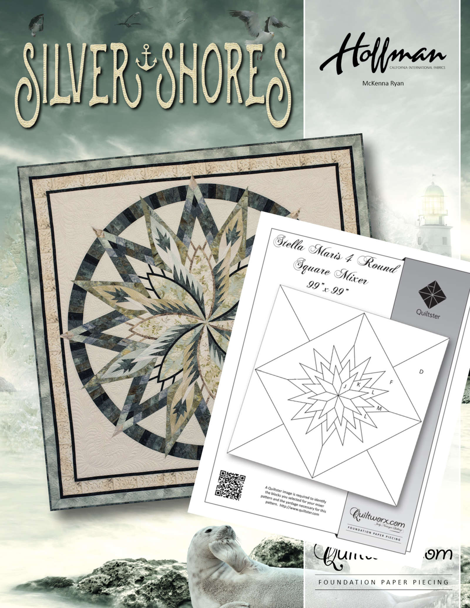 The Silver Shores Queen Expansion pattern allows you to audition different border packages available from Quiltworx to expand your quilt. This project will give you yardage for your custom colorway. When you order this pattern from Quiltworx, which is a paper pieced design, you will need to also order the Stella Maris 4 Round On Point Queen Introduction Booklet and the border of your choice. This pattern finishes to 99" Square.