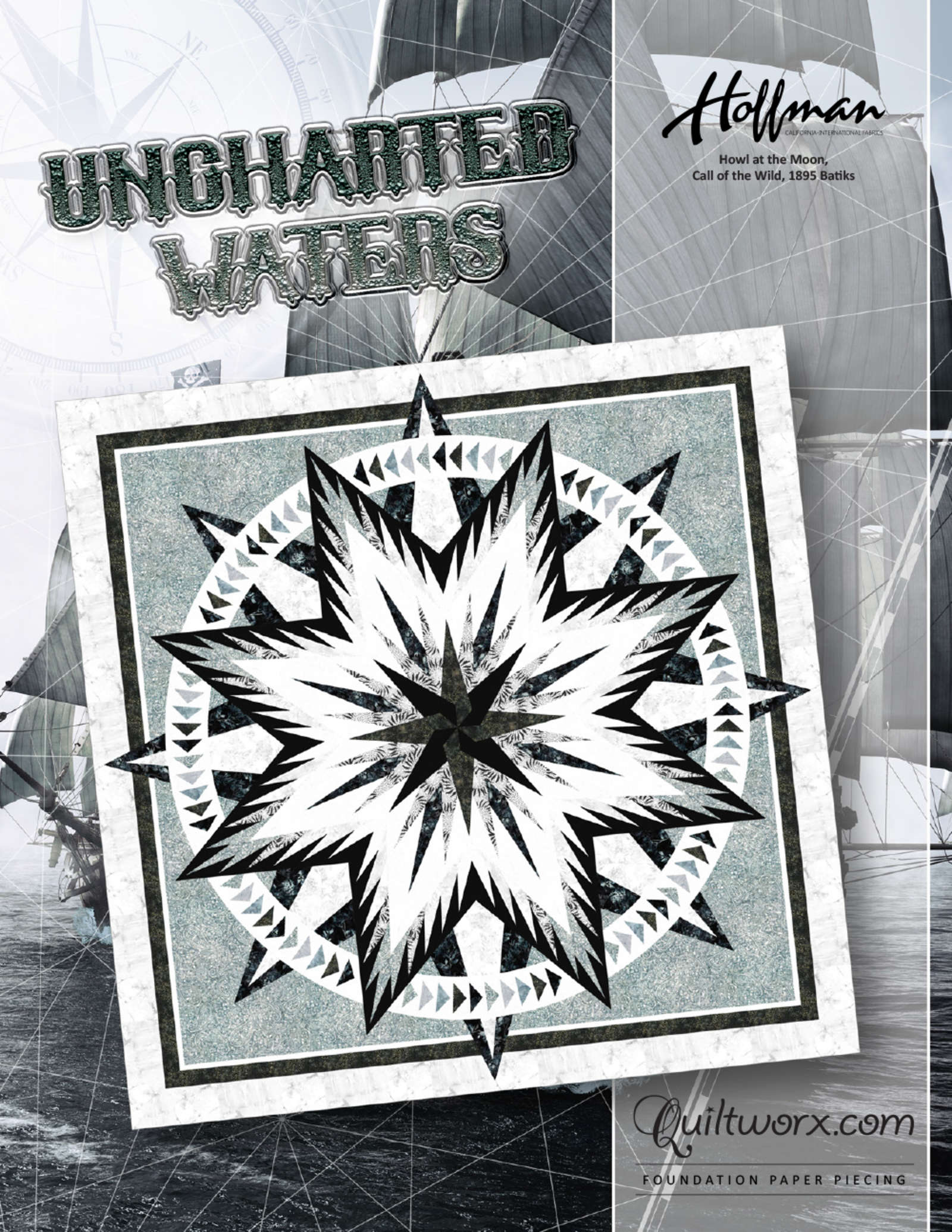 Uncharted Waters is a Foundation paper pieced pattern designed by Quiltworx.com. The quilt finishes to 68" square as shown. To make this quilt larger, additional listings can be found in the Quilt Patterns section. Uncharted Waters Queen Expansion adds a queen border after turning this quilt on point to get this quilt to 99" square. You can also add a border to take the 68" quilt to 80", then turn the quilt on point and add a 118" on point border to get this quilt to King. To find that, click on Uncharted Waters King Expansion Project.