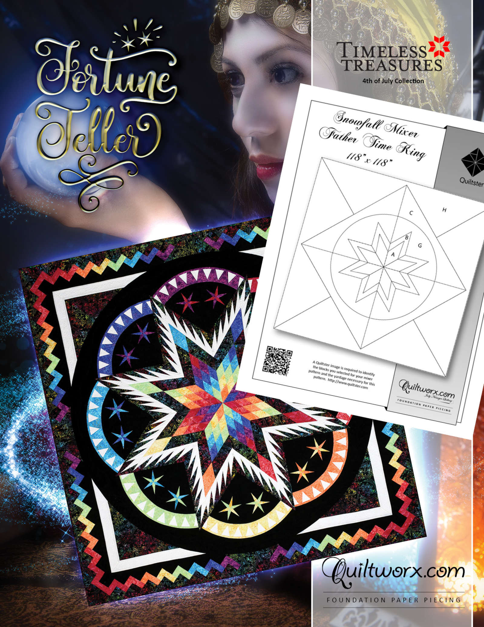 The Fortune Teller King Expansion is a foundation paper pieced pattern by Quiltworx.com. You will need the Fortune Teller pattern, which finishes to 80" and your choice of King Expansion Borders. At publication, we only have one, but more will be added with time. You do not need to purchase an introduction booklet to expand the project. The layout sheets for expanding to a king are included in the pattern.