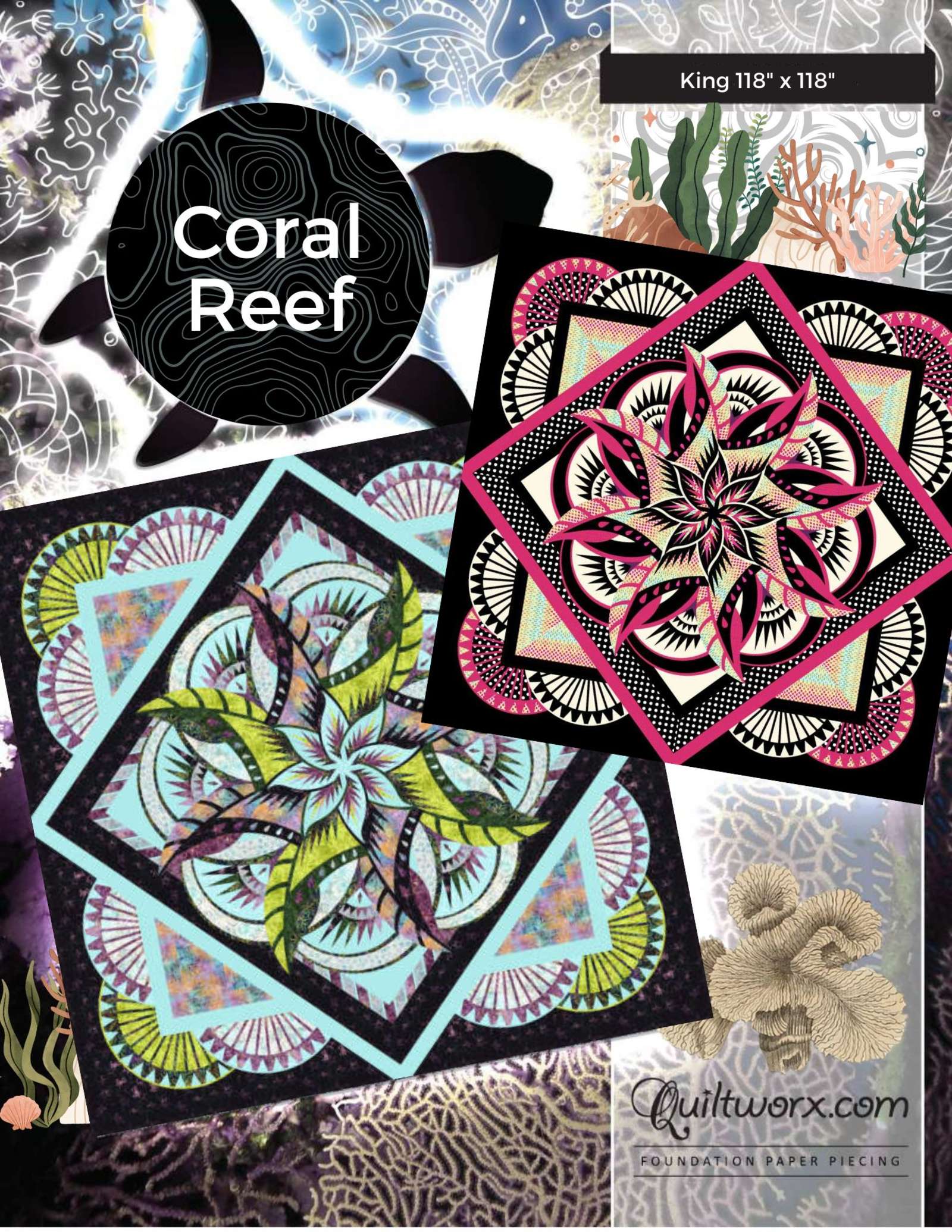 The Coral Reef is the 2021 Technique of the Month pattern designed by Quiltworx.com. The pattern is licensed by Quiltworx Certified Shops and Instructors and can only be purchased through them. If you purchase from an instructor, it must be part of a workshop. Learn more at Quiltworx.com. The Coral Reef King is a 118” square quilt pattern. Click “Customize” to choose fabric for this pattern in the Quilt Planner. Unique to this pattern is also the use of COLOR ALTERNATIVES! This is important if you are wanting to create a Rainbow Quilt. You can use the clear button on each block and open up a series of Color Alternatives. I highly recommend you do this once you receive your pattern in the mail so you understand how each alternative works. Or, click on each and play with them. Check your yardage to see what you want to work with. When you choose your option, make sure to make notes on which ones you chose so when you decide on your favorite combo, you can quickly reference that as you make your pattern! You can also check the Print page in the Quilt Planner which lists the Required Blocks. This will tell you which Alternatives you Selected. NOTE: Does Your Quilt have CRAZY HIGH yardage? If so, it is likely because you need to change Color Alternatives. For a rainbow quilt, which is popular with this design, you will likely want to choose at least Color Alternative 1 for each block, and possibly even another Color Alternative. In most cases, the Standard Alternative will likely require significantly higher yardage.