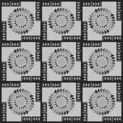 Skipping Stones is a foundation paper pieced pattern designed by Quiltworx.com. This design finishes to 76" square. A layout to make it larger, which will take it to 101" square is also available in Quiltster. Under that option will be a 109" square option that includes an 8 inch border.