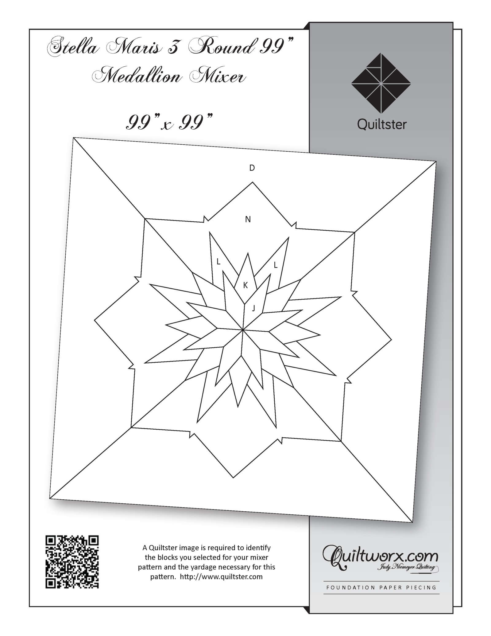 This mixer combines blocks from the Stella Maris series and the Meadow Star Mixer series with a group of 268-N blocks that can be used between the Stella Maris centers and Meadow Star 99" Queen Medallion borders. For this quilt you need (1) package of your choice of the following: JNQ00268-J JNQ00268-K JNQ00268-L JNQ00268-N JNQ00264-D