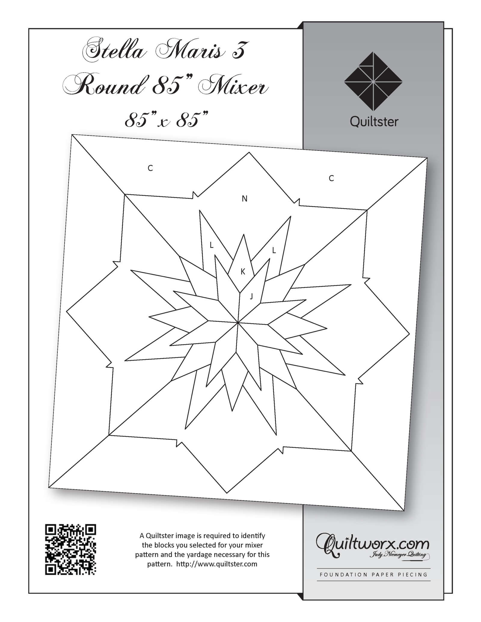 This mixer combines blocks from the Stella Maris series and the Meadow Star Mixer series with a group of 268-N blocks that can be used between the Stella Maris centers and Meadow Star 85" borders. For this quilt you need (1) package of your choice of the following: JNQ00268-J JNQ00268-K JNQ00268-L JNQ00268-N JNQ00264-C