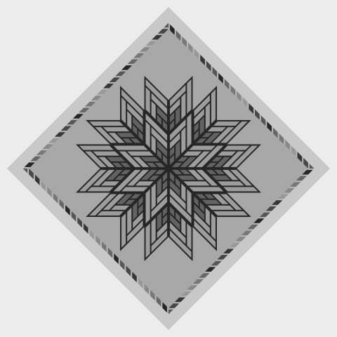 This layout will take the Fractured Star Pattern from 80", turn it on point, and add King borders to increase the size to 118". You have your choice of King borders, but must purchase the Fractured Star pattern, and then the King border of your choice.