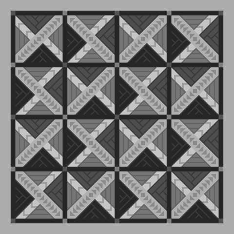 Crossroads is a foundation paper pieced pattern by Quiltworx.com. It is a beginner pattern, with all straight lined paper piecing. It is also Quiltworx Strip Set compatible and can be designed using different sets of 48 2-1/2" strips. There is not an expansion layout in Quiltster to make it larger, however, we recommend increasing the yardage by 5/8 yard on your border fabric if you would like to increase the border size and take this quilt to 109" square. More information is included in the pattern.