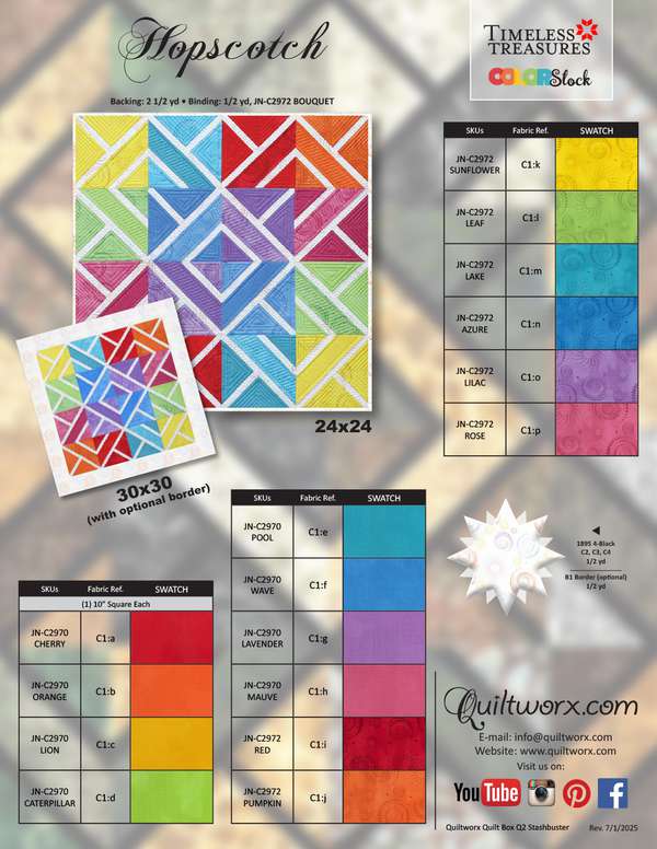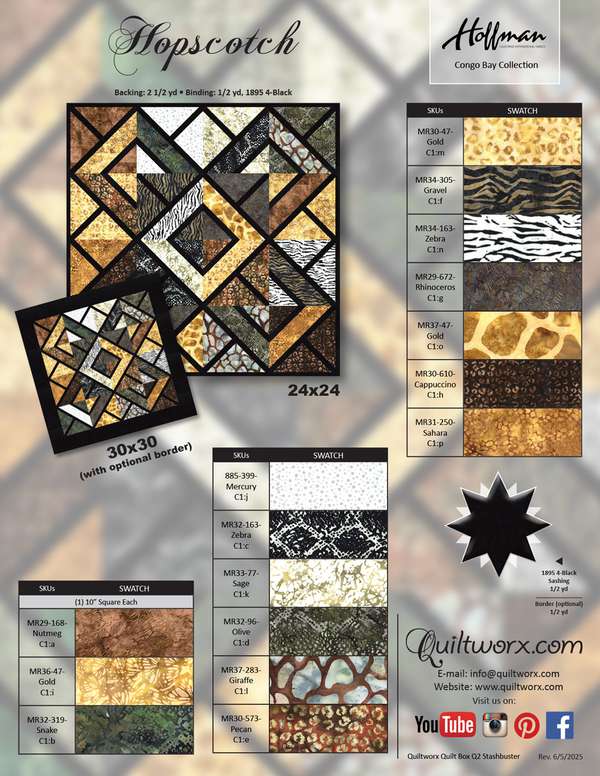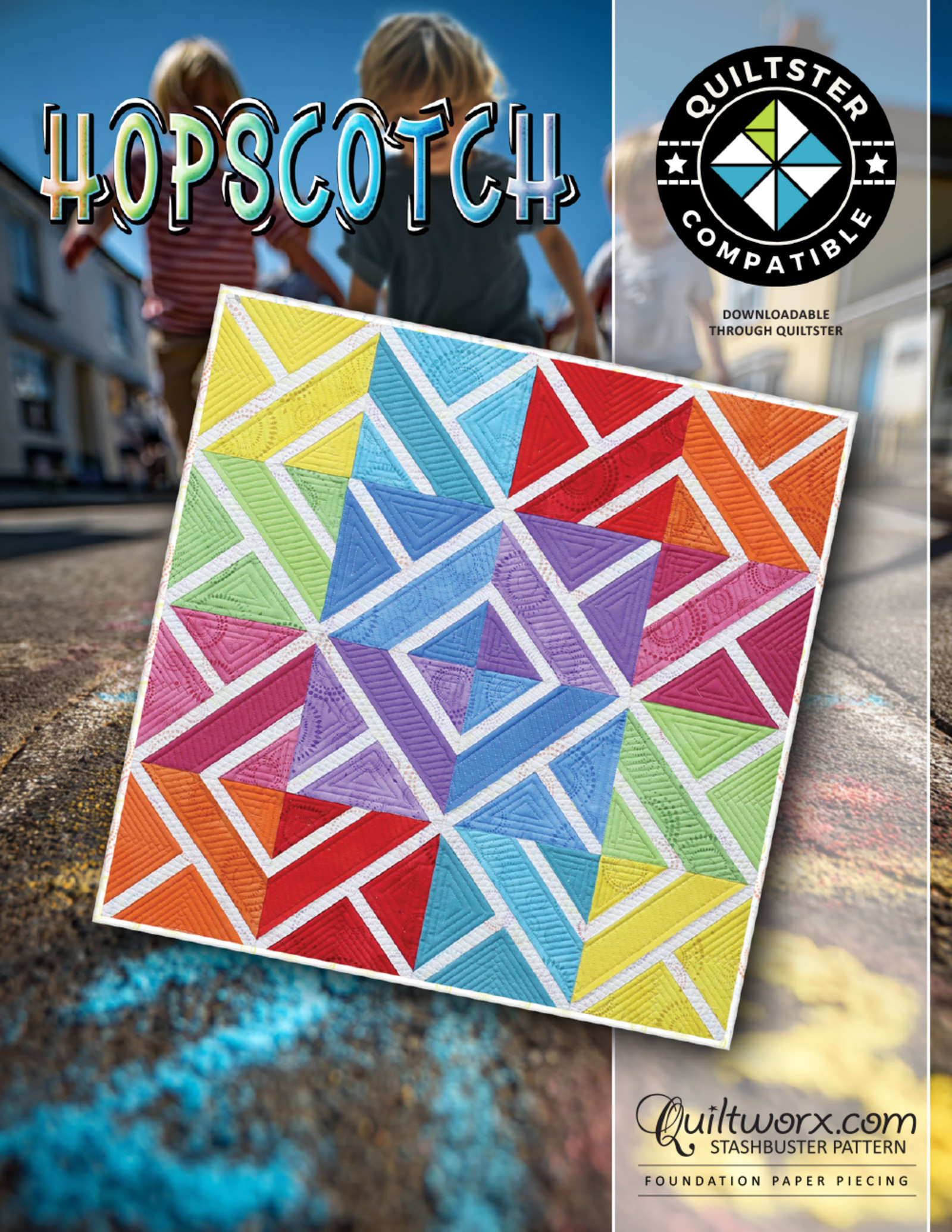 HopScotch is a foundation paper pieced design by Quiltworx.com. It is part of their Stashbuster series and is designed as an introductory block and quilt. You can make it with or without a border if you would like. Replacement papers are available from Quiltworx.com to make a second sample and also to make it larger. A digital download is also available here through Quiltster.com!