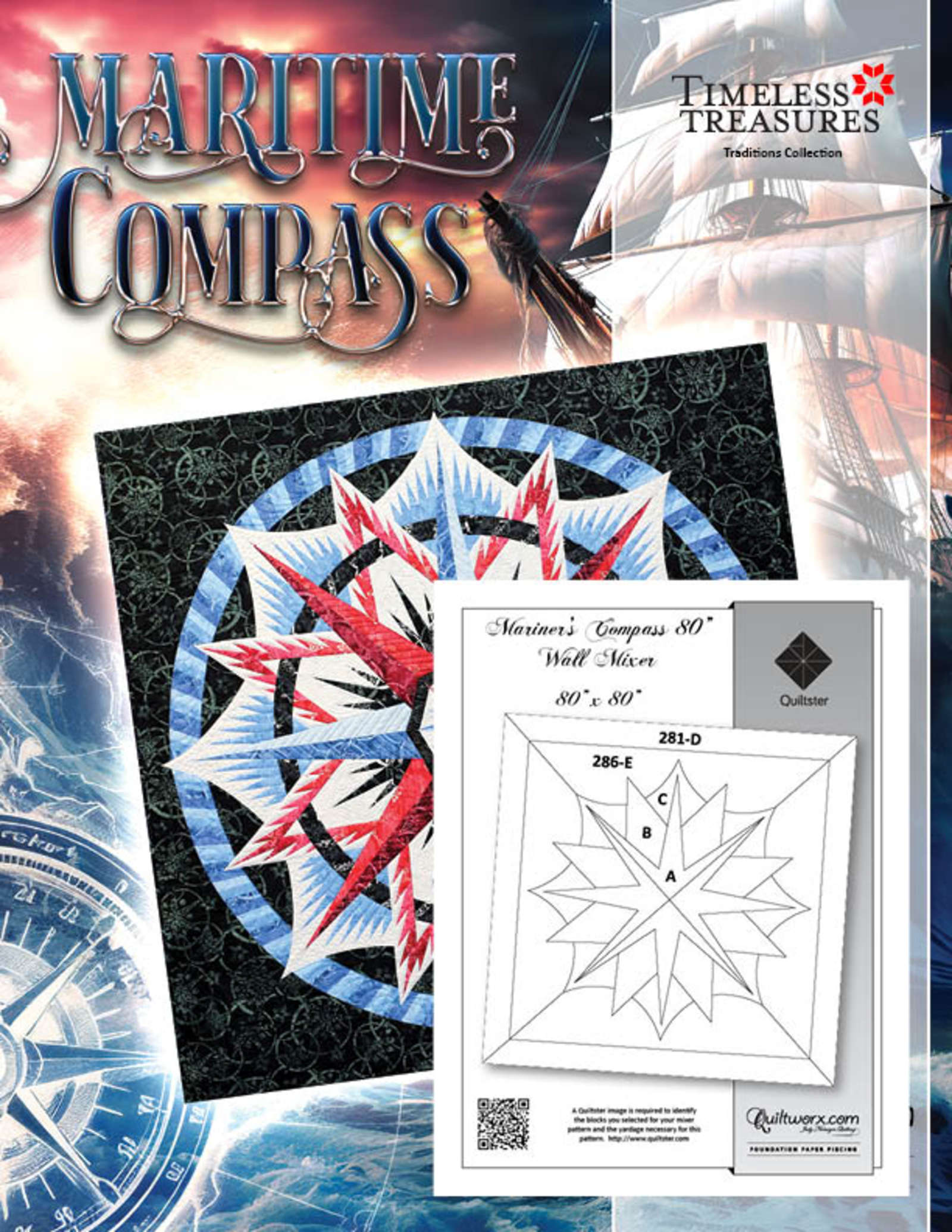 Maritime Compass is a foundation paper pieced pattern designed by Quiltworx.com.